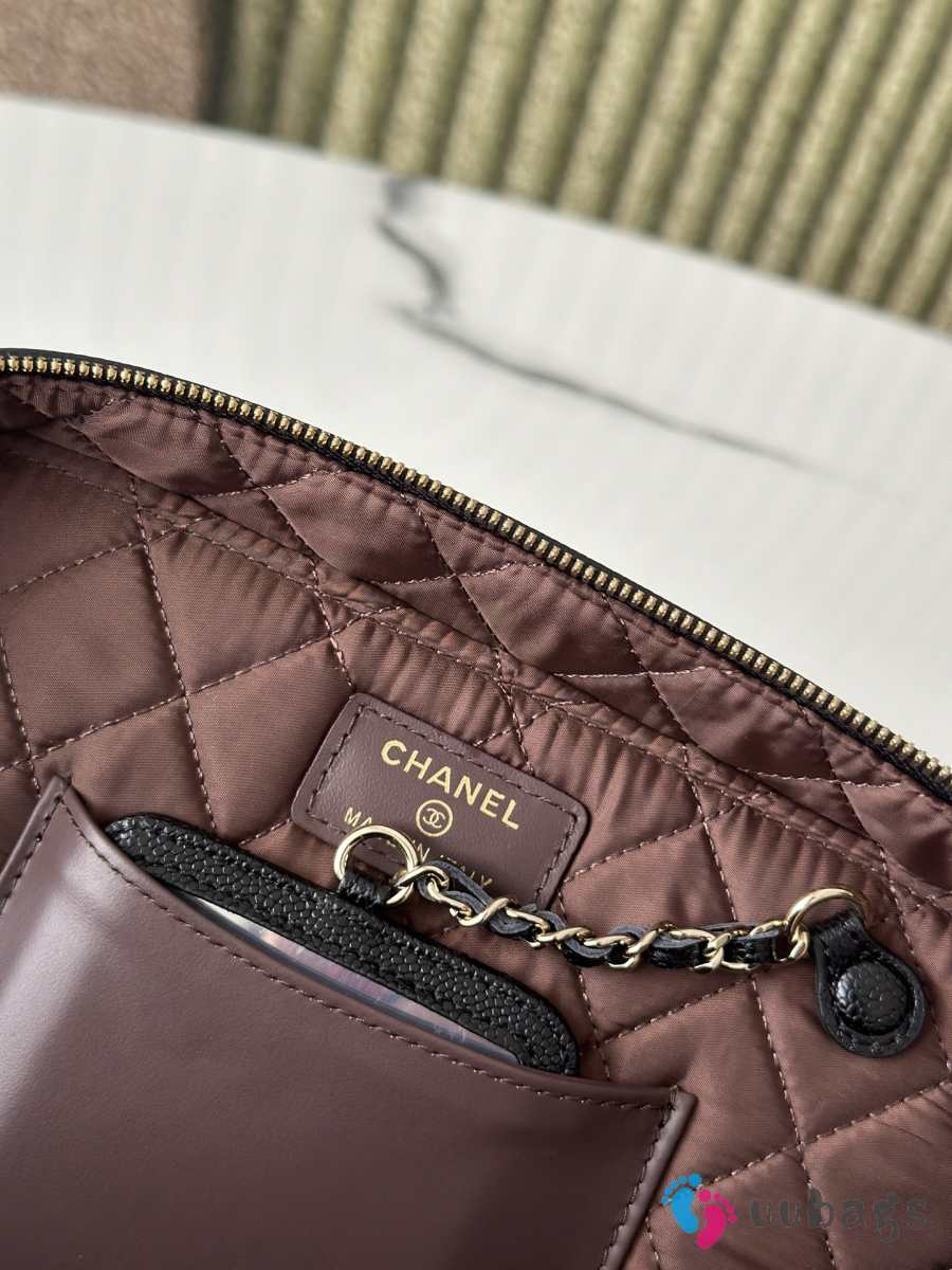 Chanel Large Hobo Bag Glossy Calfskin & Gold-Tone Metal Black 22x30x5cm