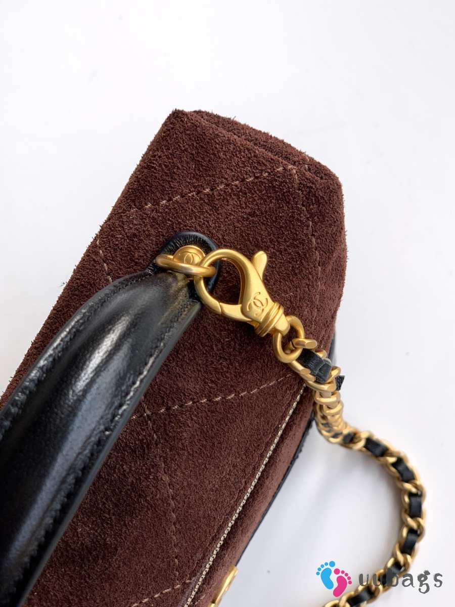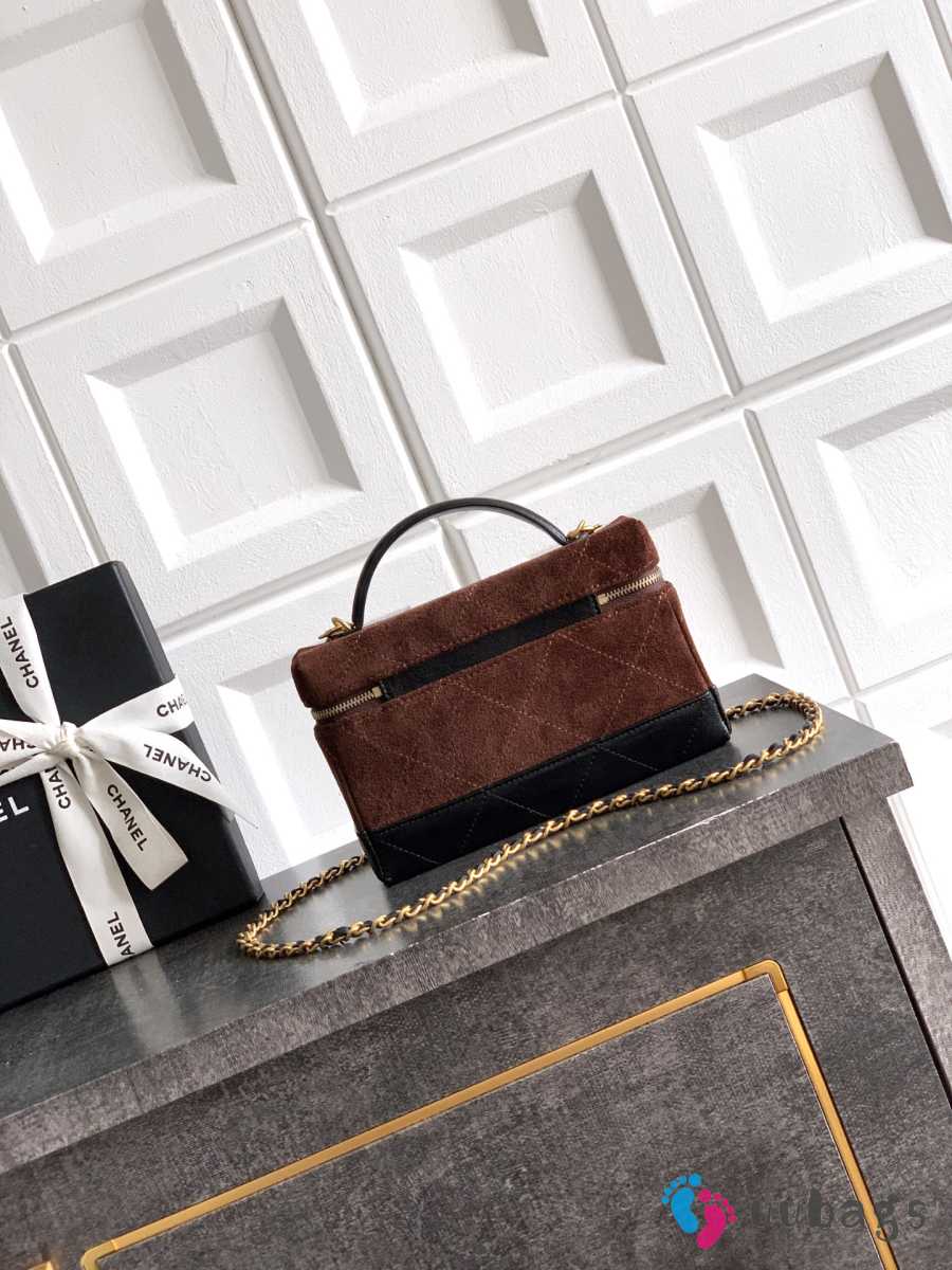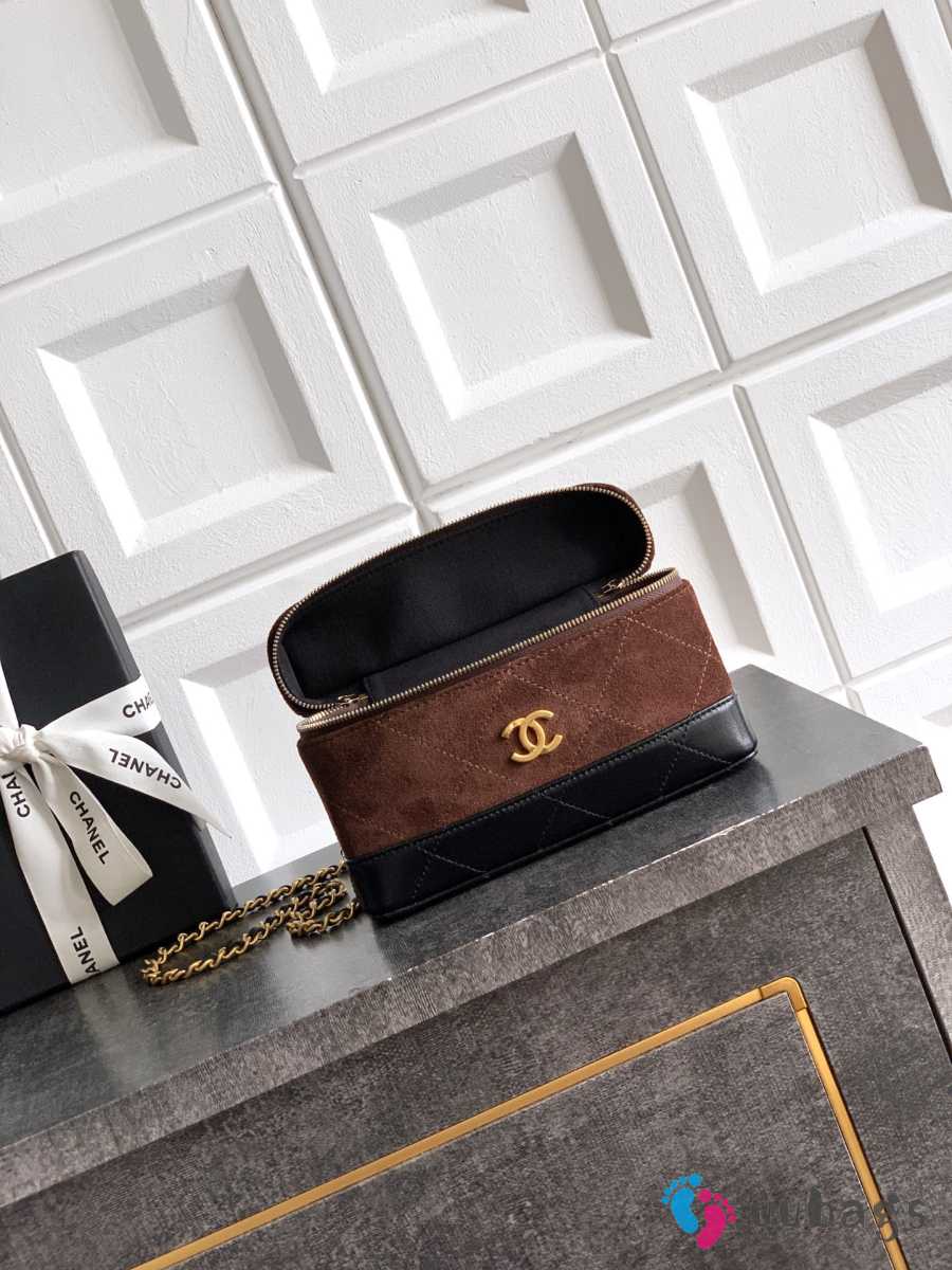 Uubags Chanel Vanity With Chain Suede Calfskin, Shiny Lambskin & Gold-Tone Metal In Dark Brown & Black 17x19.5x5cm