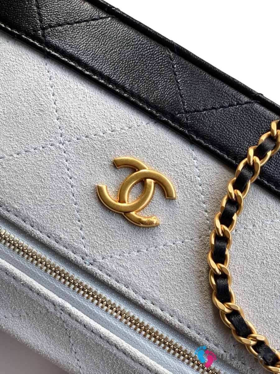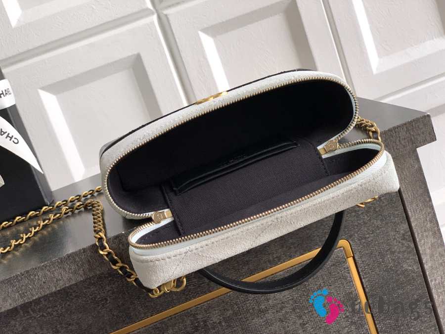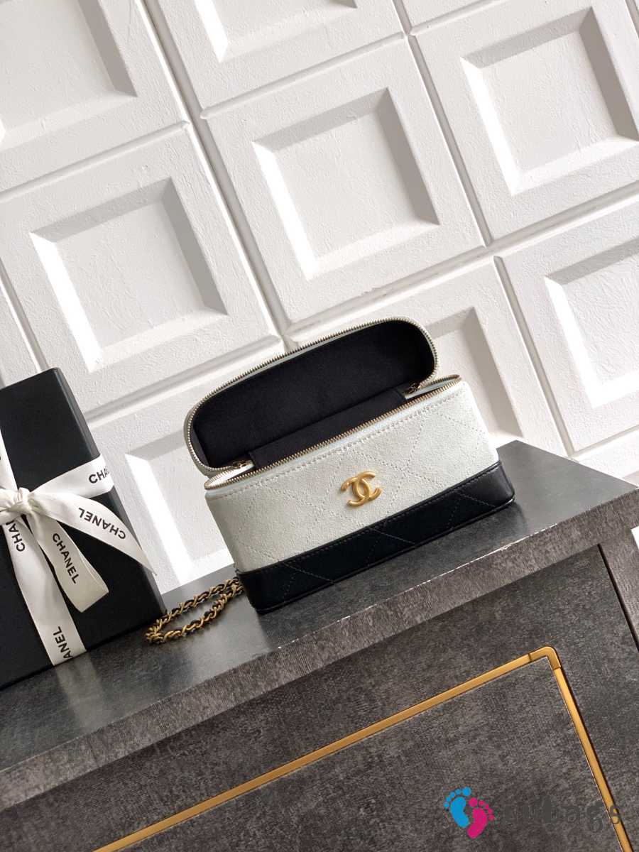 Uubags Chanel Vanity With Chain Suede Calfskin, Shiny Lambskin & Gold-Tone Metal In Light Grey & Black 17x19.5x5cm