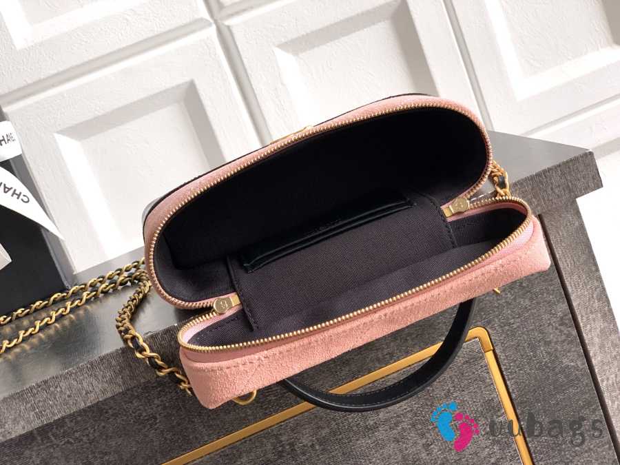 Uubags Chanel Vanity With Chain Suede Calfskin, Shiny Lambskin & Gold-Tone Metal In Pink & Black 17x19.5x5cm