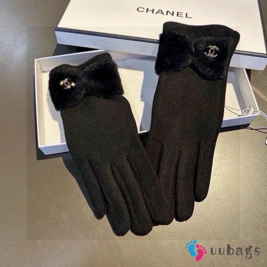 Uubags Chanel Wool and Fur Gloves with CC Logo
