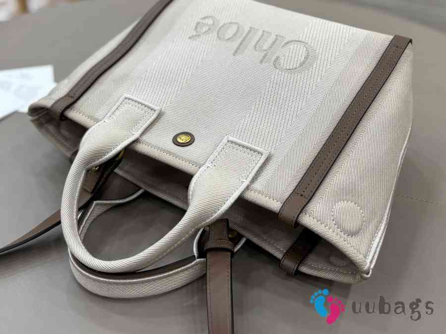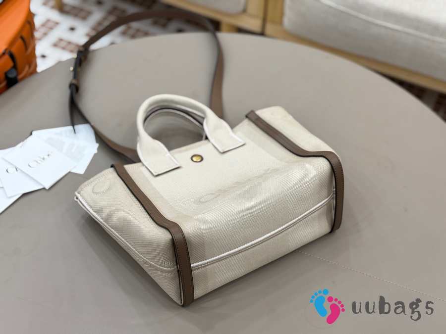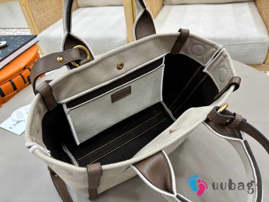 Uubags Chloé small carry tote bag in kohl brown canvas 27x23x12cm