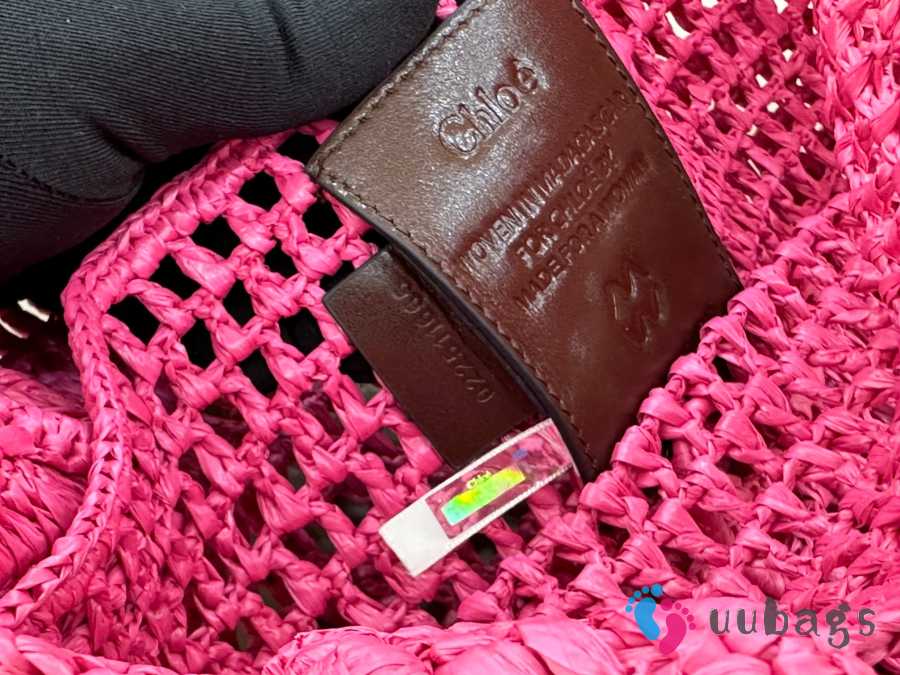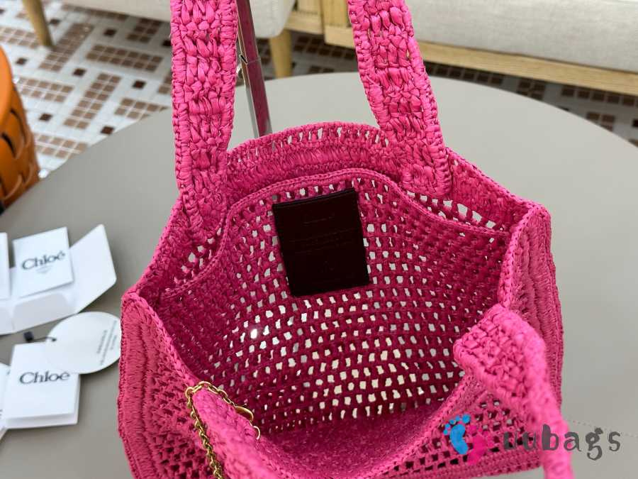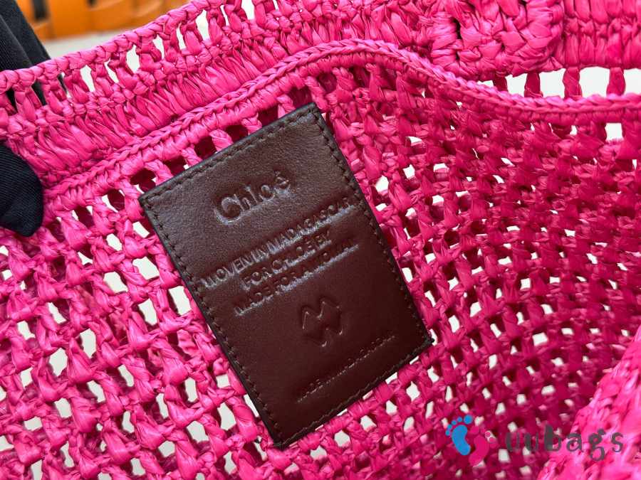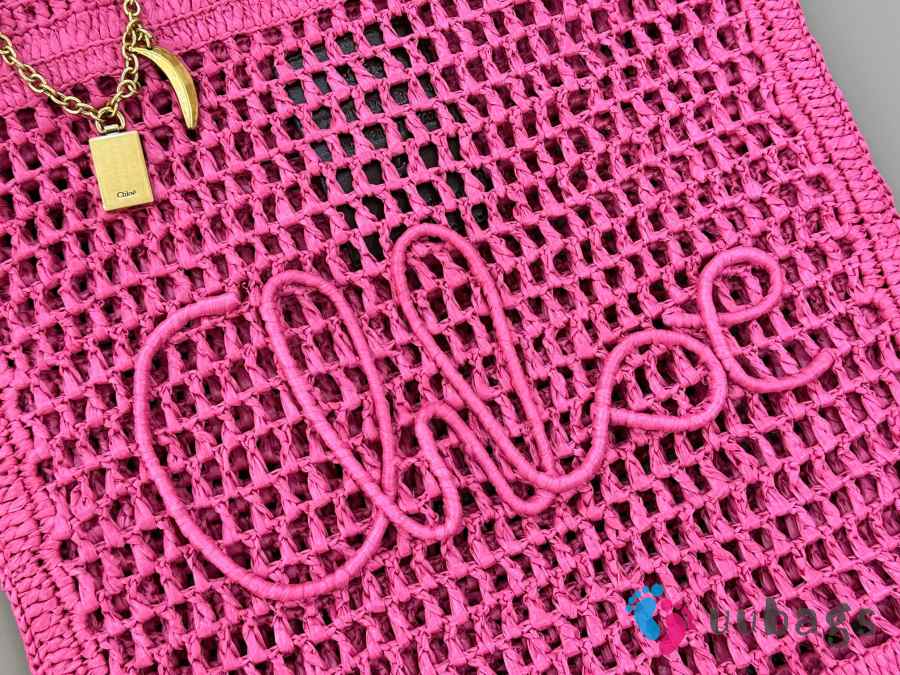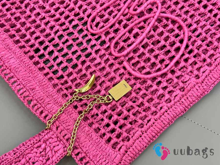 Uubags Chloe Summer Banana tote bag in fuchsia rose raffia 33x37x2cm