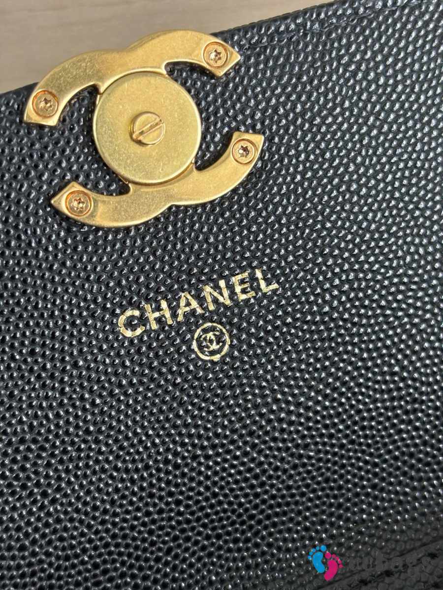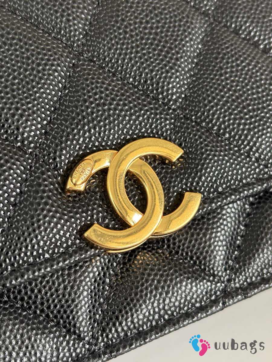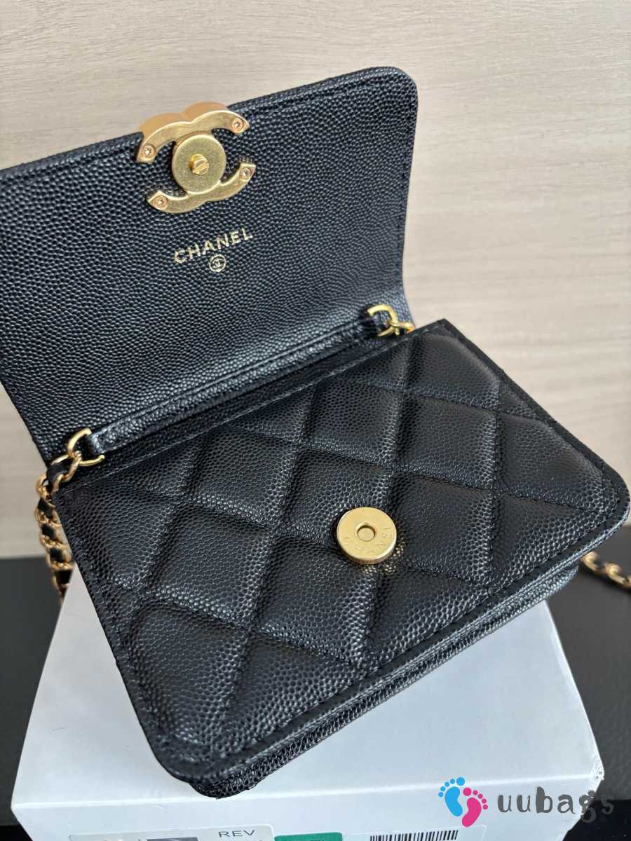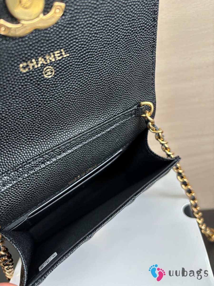Uubags Chnael Mini Woc Wallet On Chain In Black Caviar Calfskin & Gold-Tone Metal 12x7.5x3cm