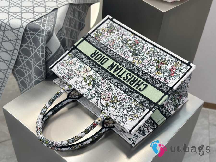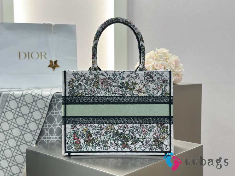 Uubags Christian Dior Book Tote Bag 36cm Jardin d'Hiver Embroidery in Green 36x28x16cm