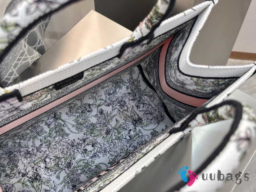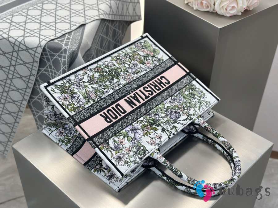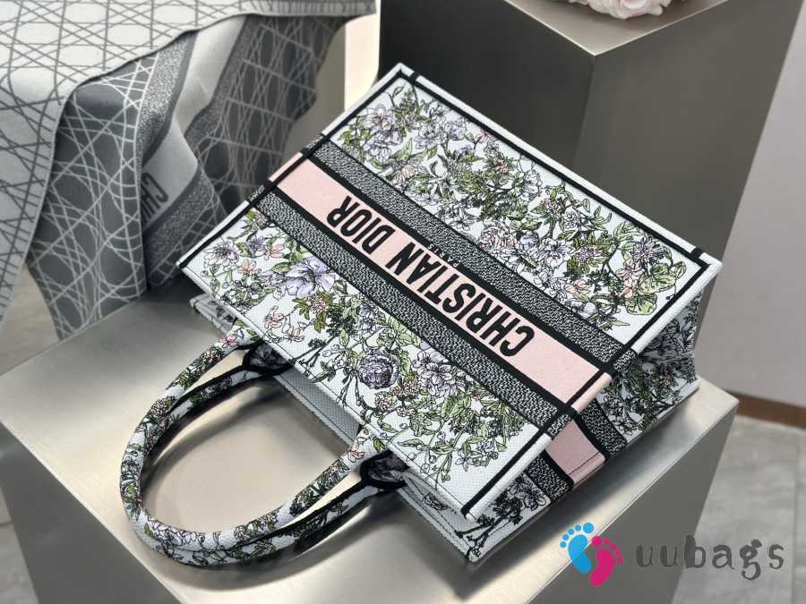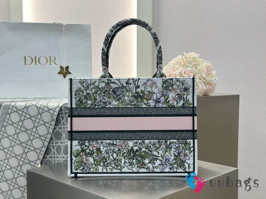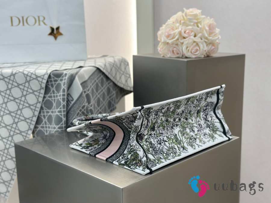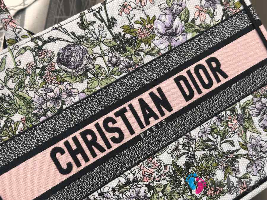 Uubags Christian Dior Book Tote Bag 36cm Jardin d’Hiver Embroidery in Pink and Green 36x28x16cm