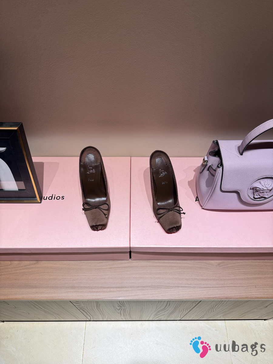 Uubags Christian Louboutin Cassia Mule 85 Satin Pumps In Dark Brown 10.5cm