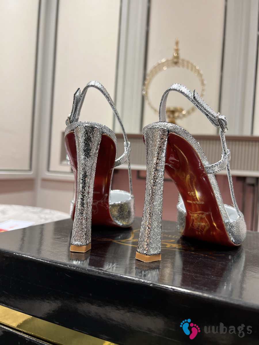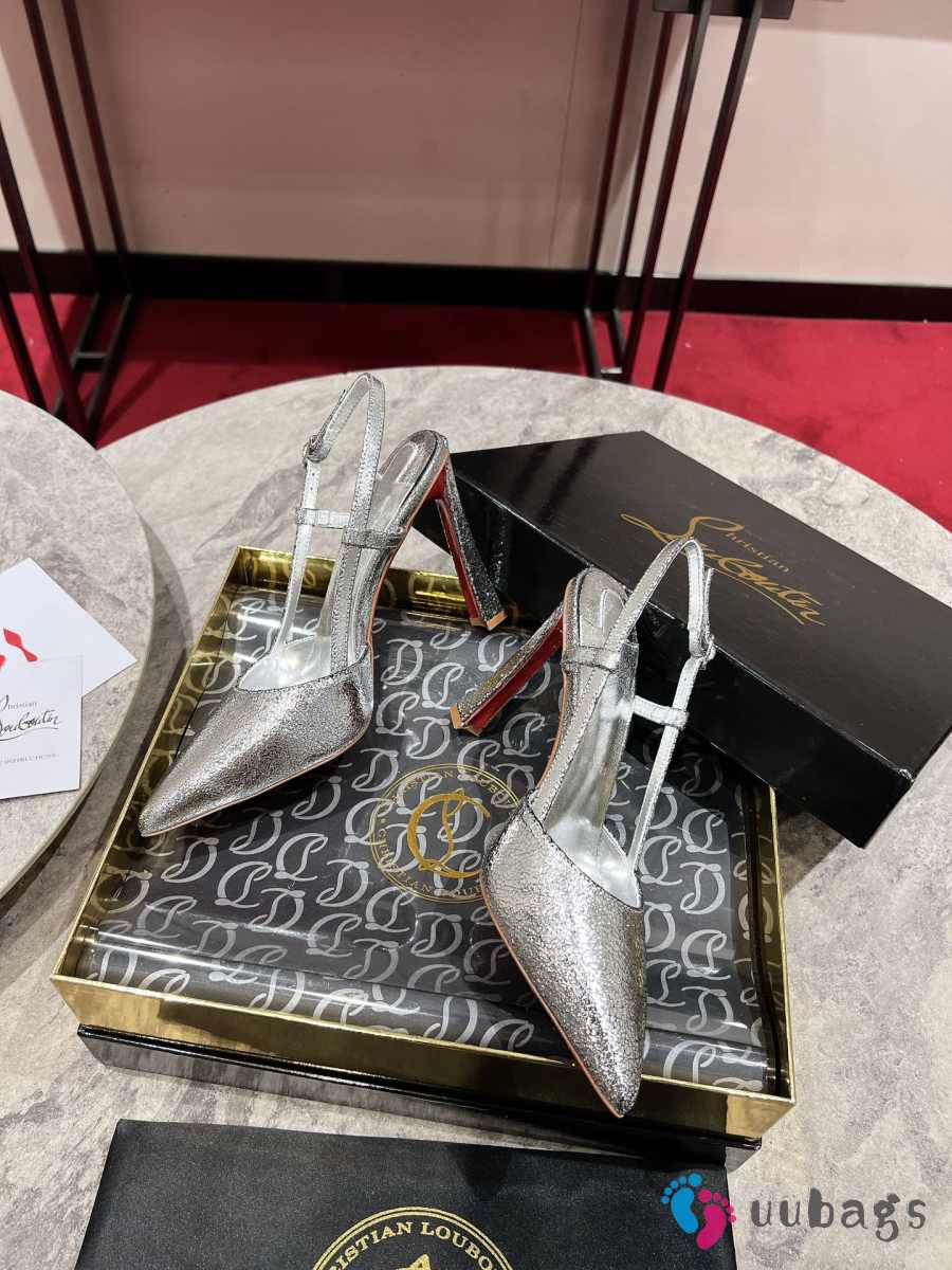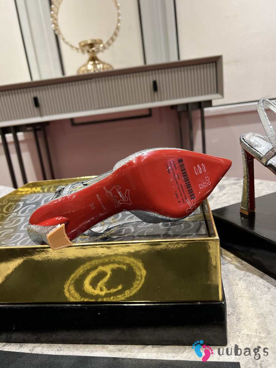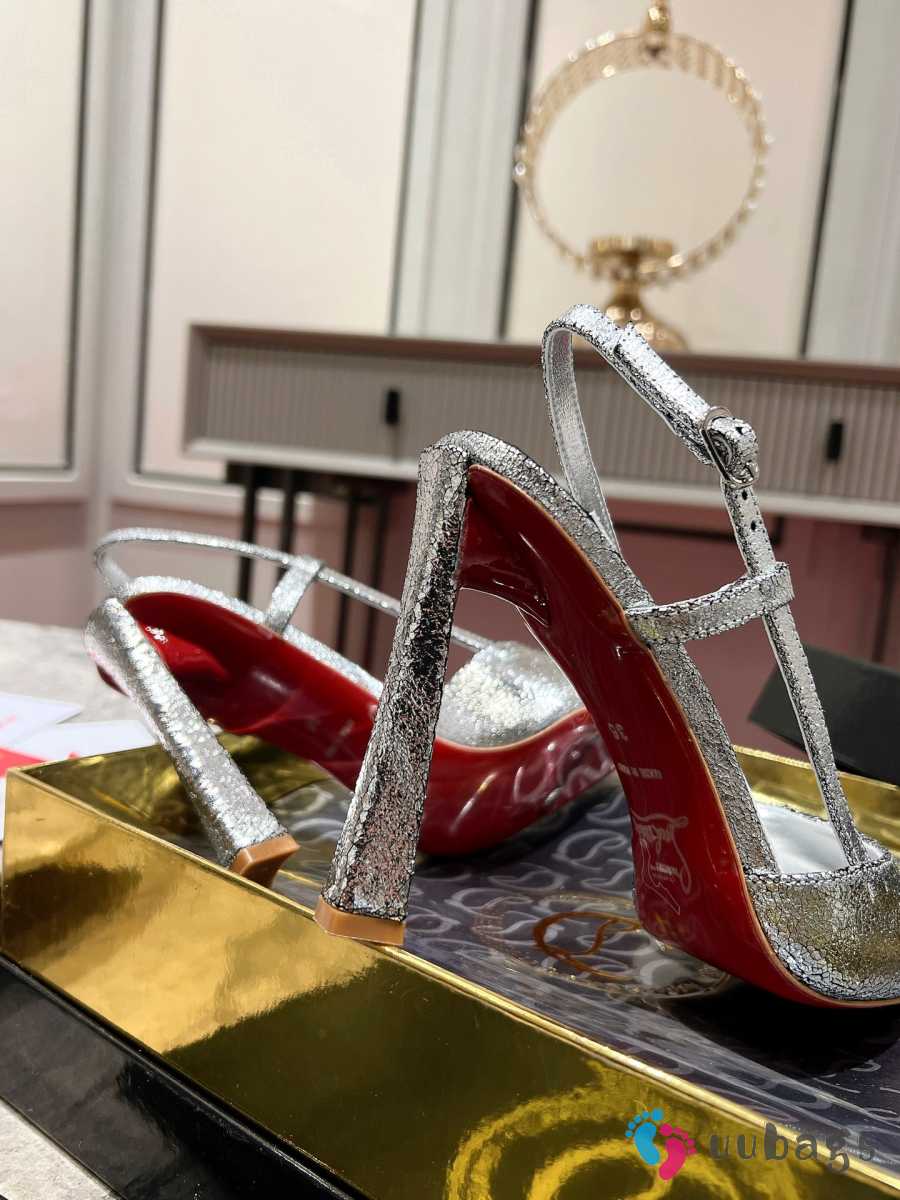 Uubags Christian Louboutin Metallic Silver T-Strap Slingback Pumps 10cm