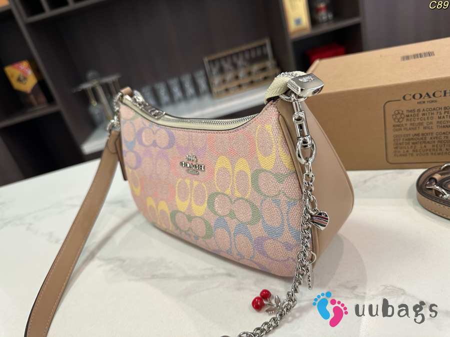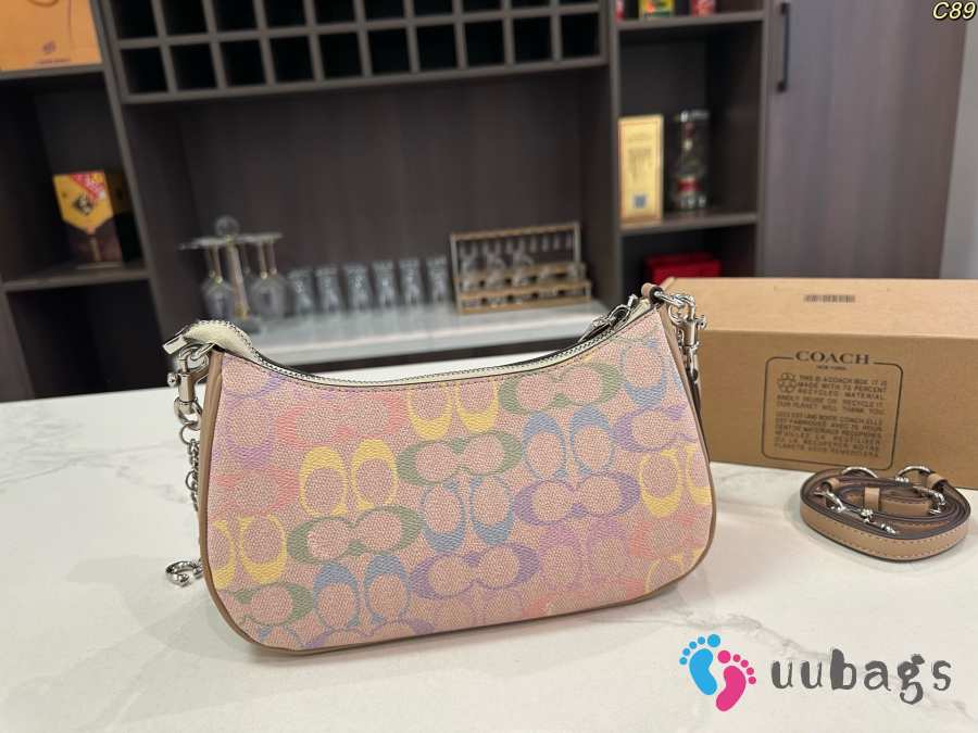 Uubags Coach Mini Teri Shoulder Bag In Rainbow Signature Canvas 16x14cm