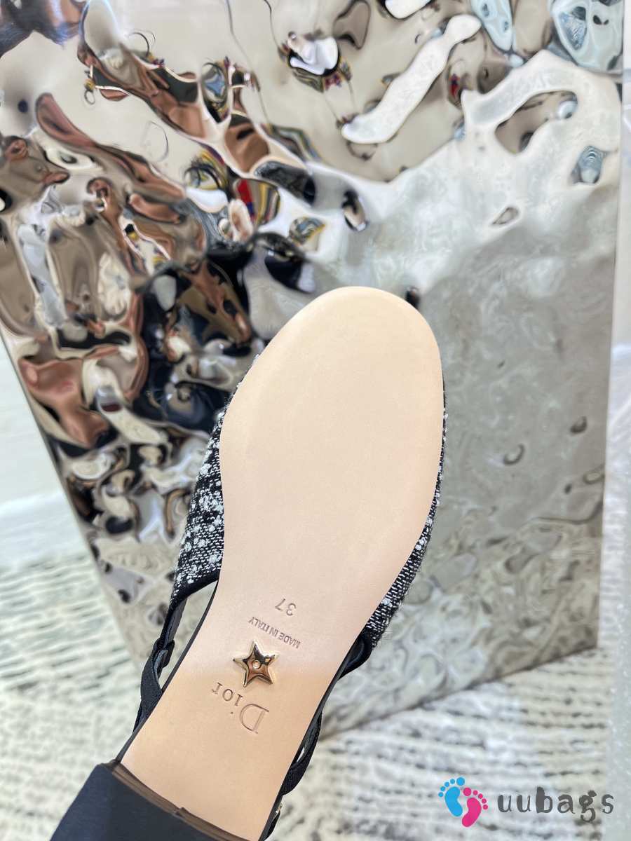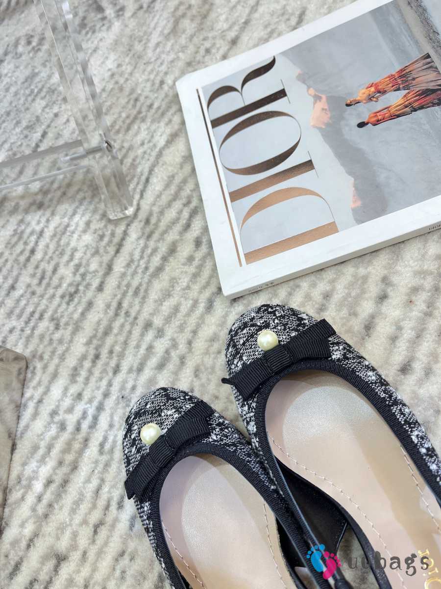 Uubags Dior Ballet Slingback Pump Black Tweed with White Microcannage Motif