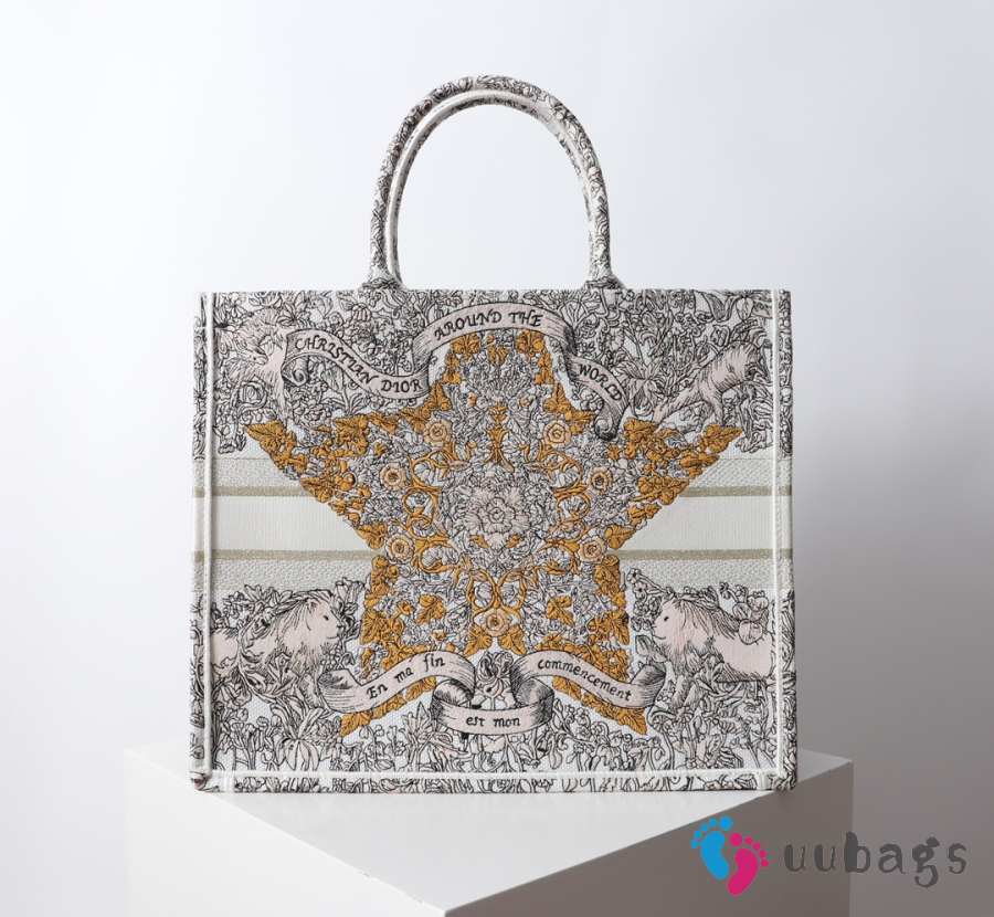 Uubags Dior Book Tote Large Size Latte and Gold-Tone Zodiac Embroidery 41.5x34.5x16cm