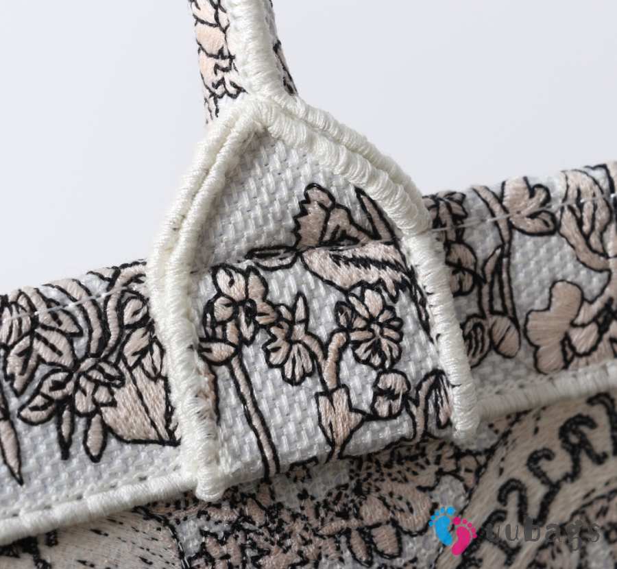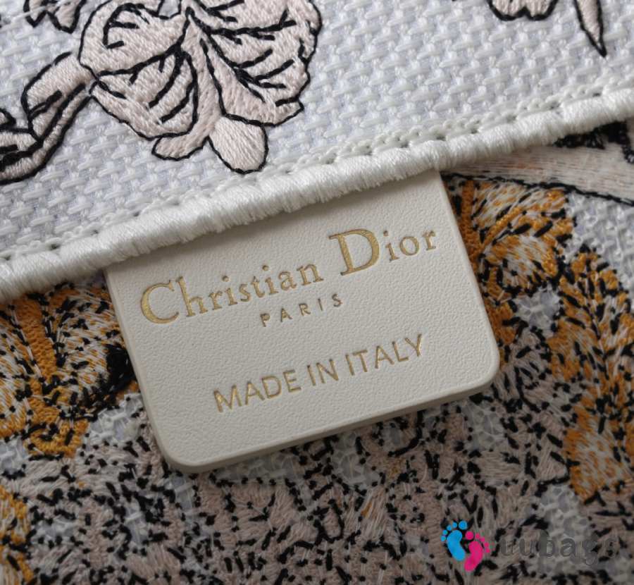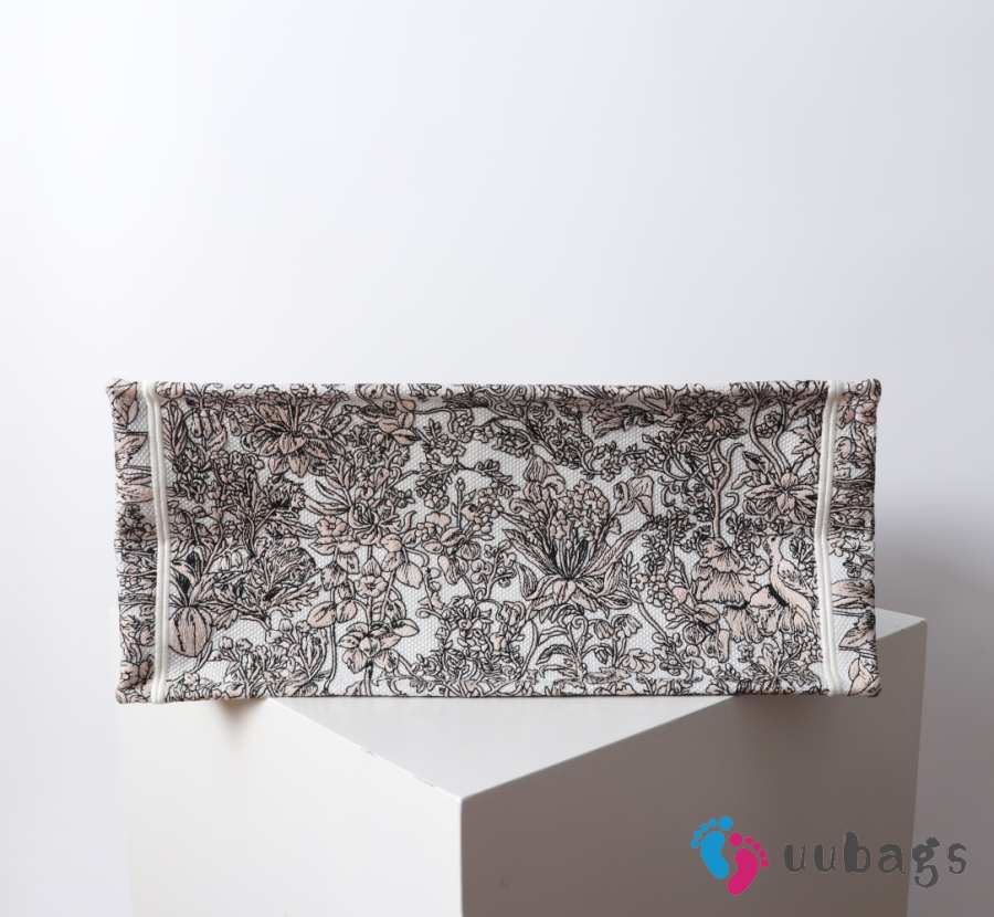 Uubags Small Dior Book Tote Bag in Beige Multicolor Toile de Jouy Flower Embroidery 26.5x21x14cm