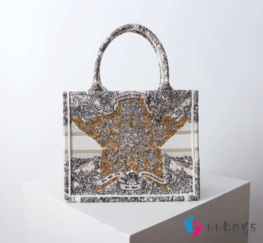 Uubags Dior Book Tote Small Size Latte and Gold-Tone Zodiac Embroidery 26.5x21x14cm