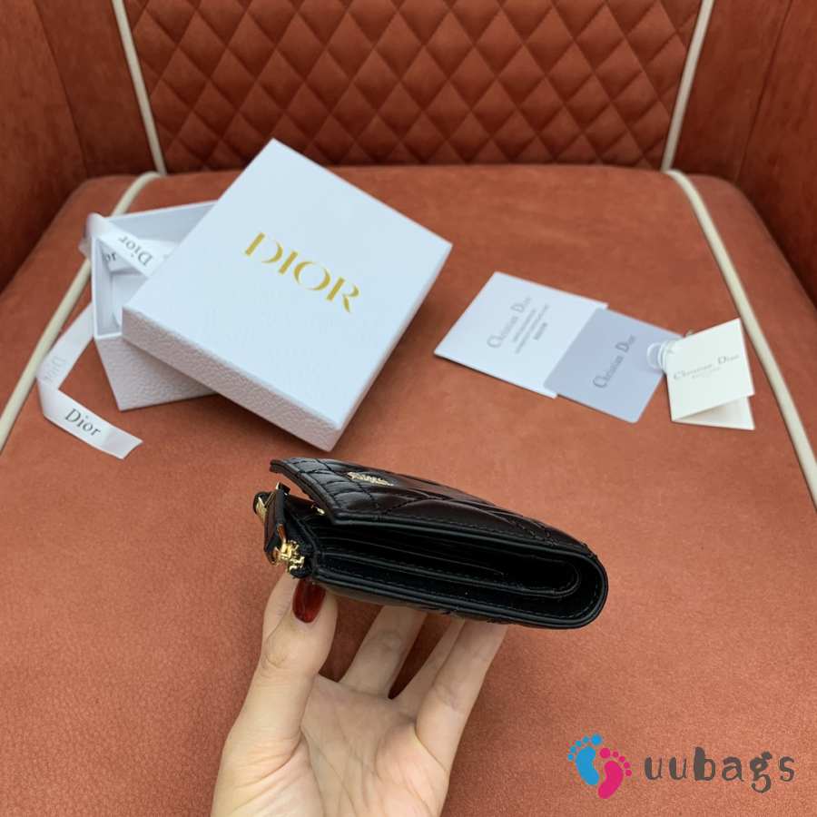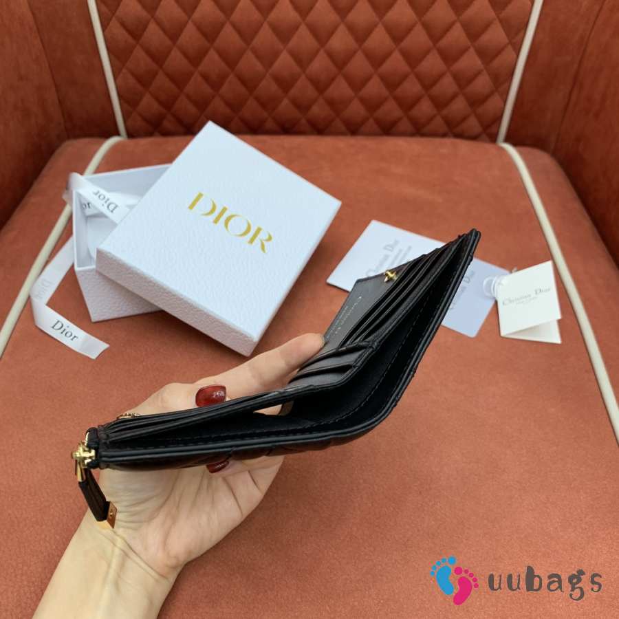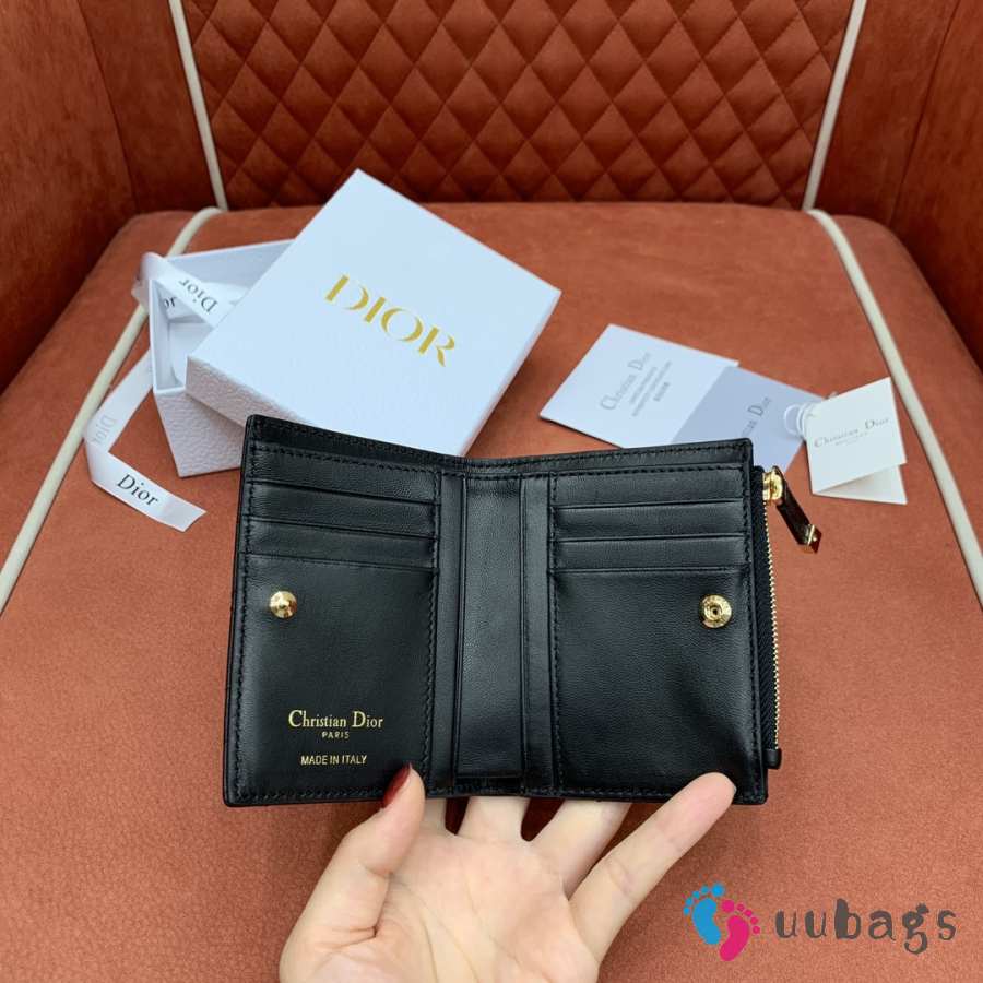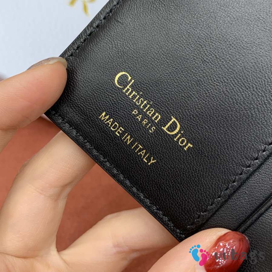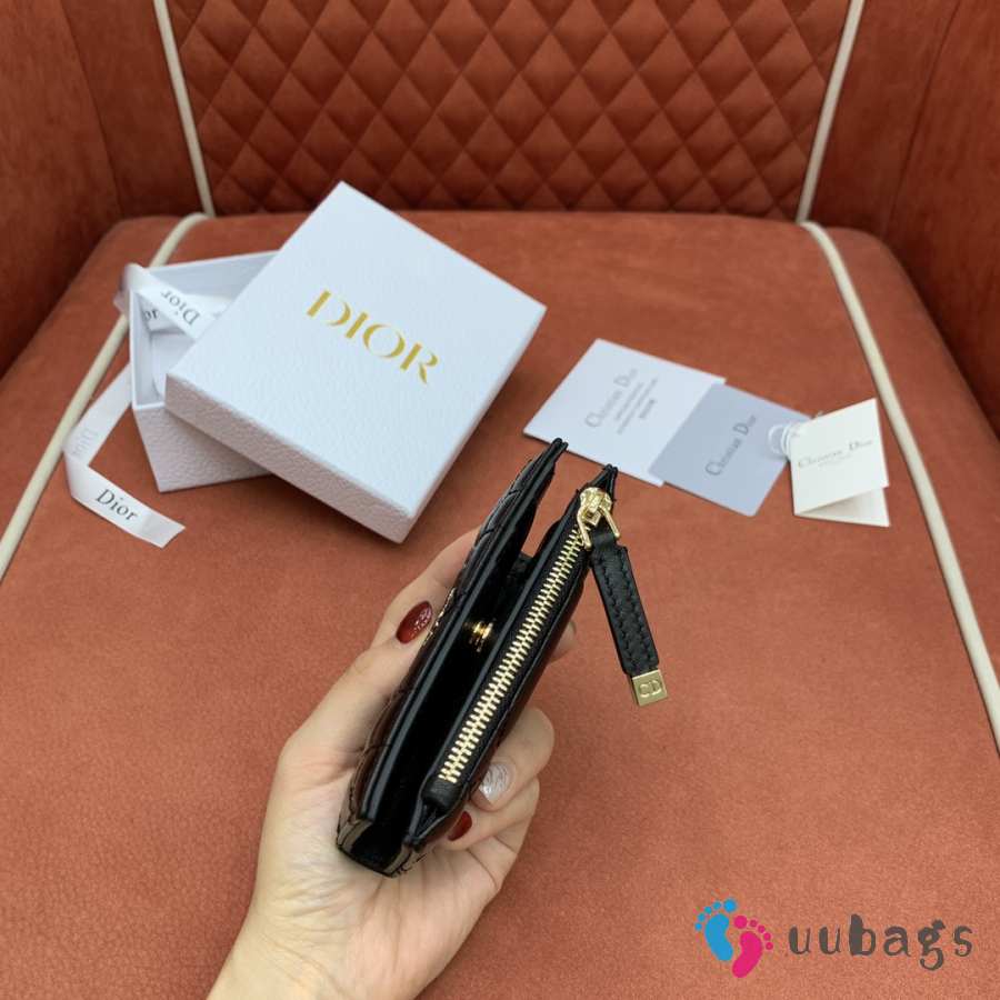 Uubags Dior Caro Dahlia Wallet With Crystals Black Macrocannage Lambskin 12x9x2cm