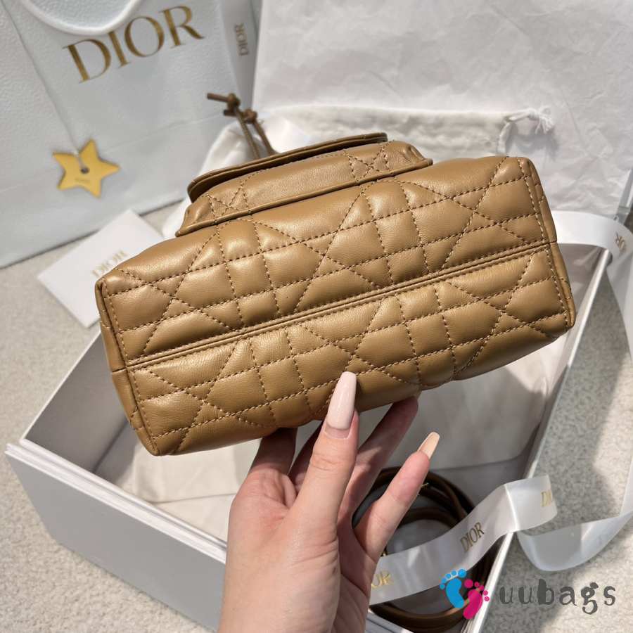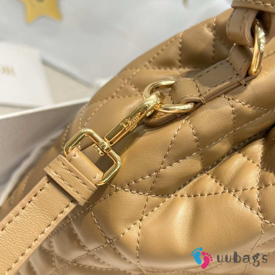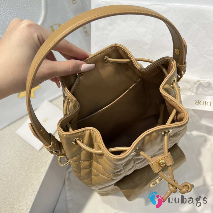 Uubags Dior Caro Mini Bucket Bag Brown Macrocannage Lambskin 20x24x9cm