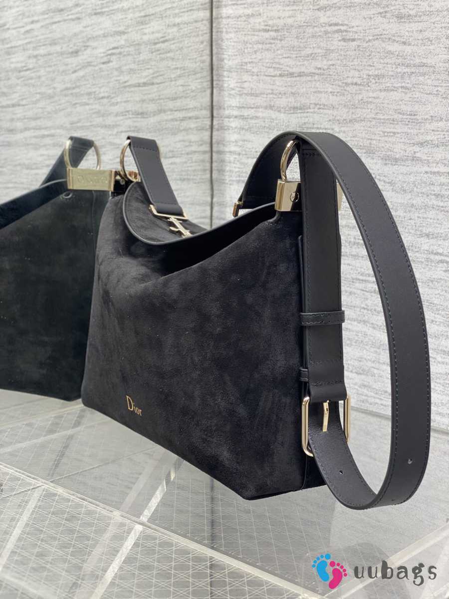 Uubags Dior Hobo Bag in Black Suede & Smooth Calfskin With Gold Hardware 28x24x8cm