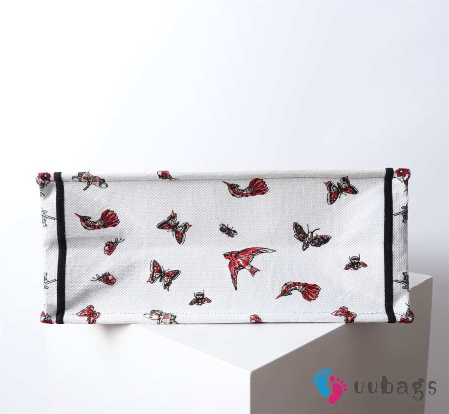 Uubags Dior Large Book Tote Bag Butterfly Embroidery in Red and Black 41.5x34.5x16cm