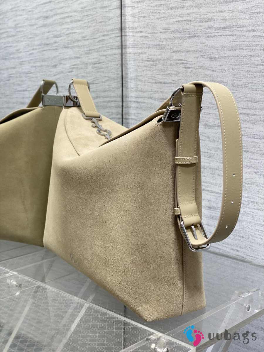 Uubags Dior Large Hobo Bag in Beige Suede & Smooth Calfskin With Silver Hardware 39x29x11cm