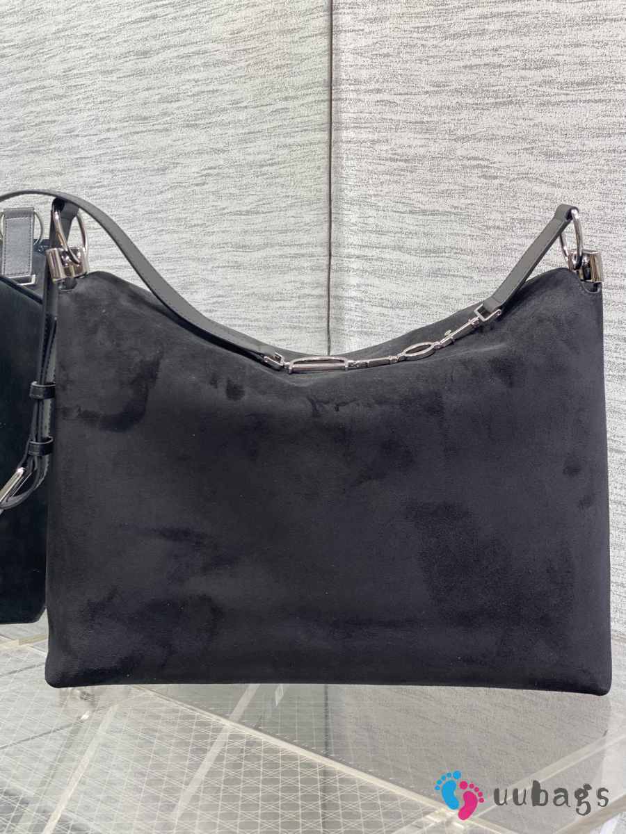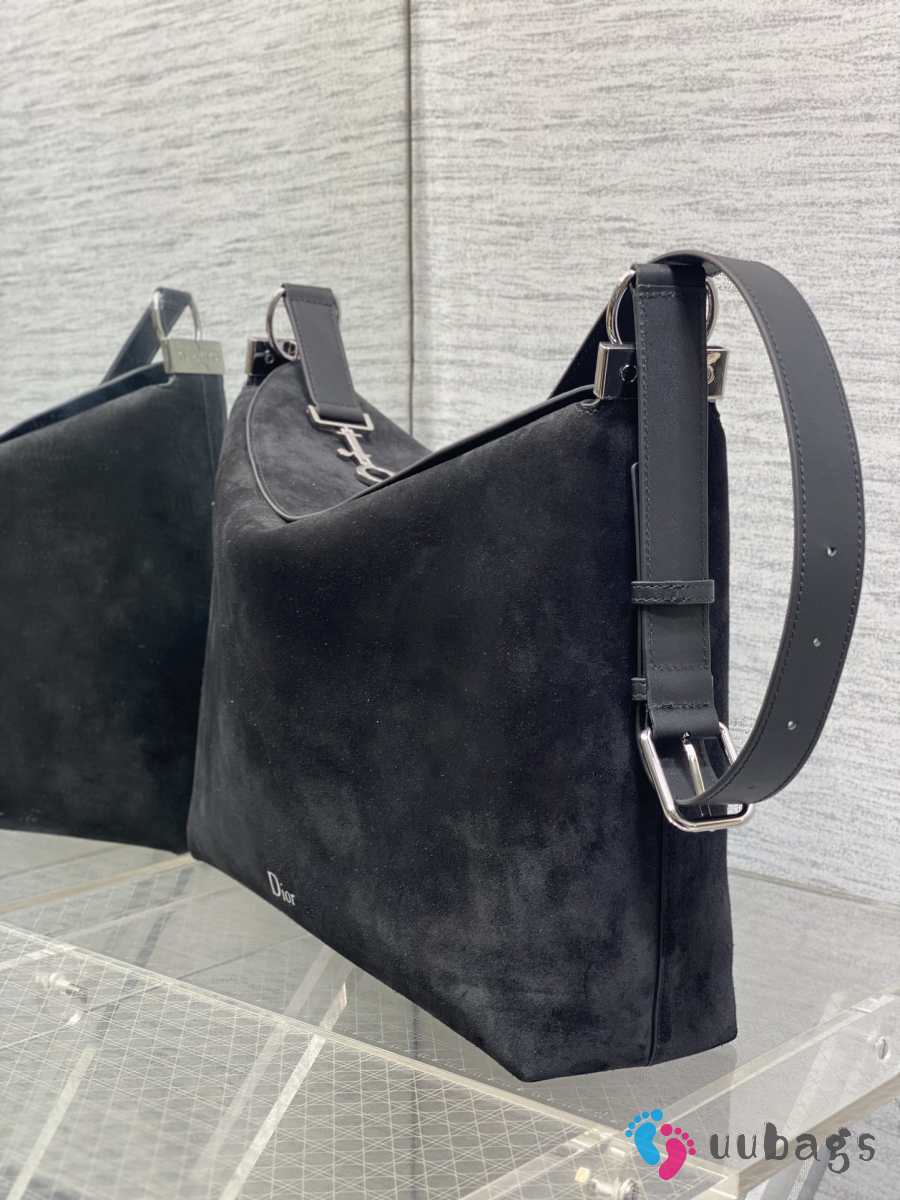 Uubags Dior Large Hobo Bag in Black Suede & Smooth Calfskin With Silver Hardware 39x29x11cm