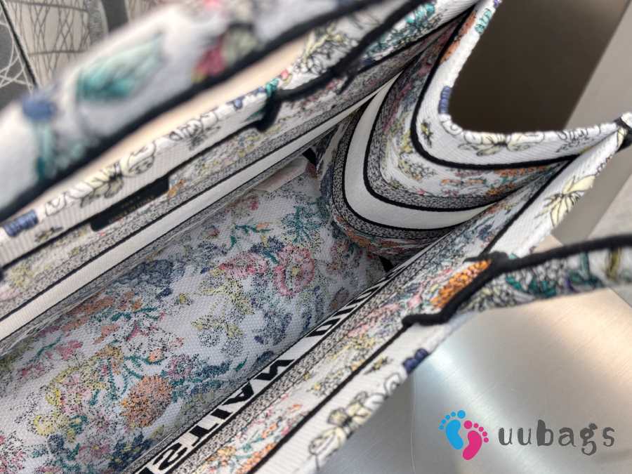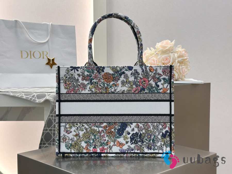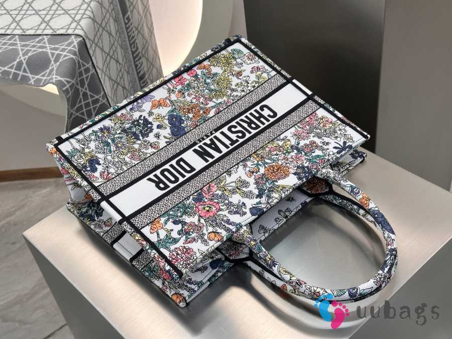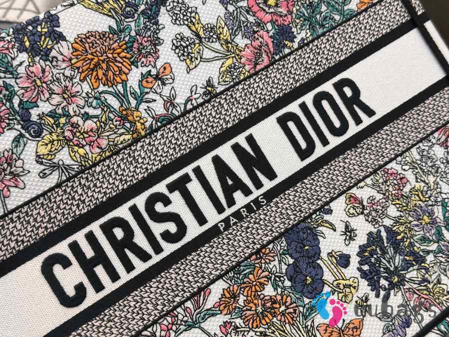 Uubags Dior Lucky Medium Book Tote Bag Multicolor Dior Flowers Calendar Allover Embroidery 36x27.5x16.5cm