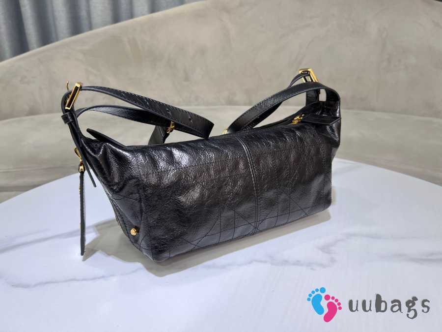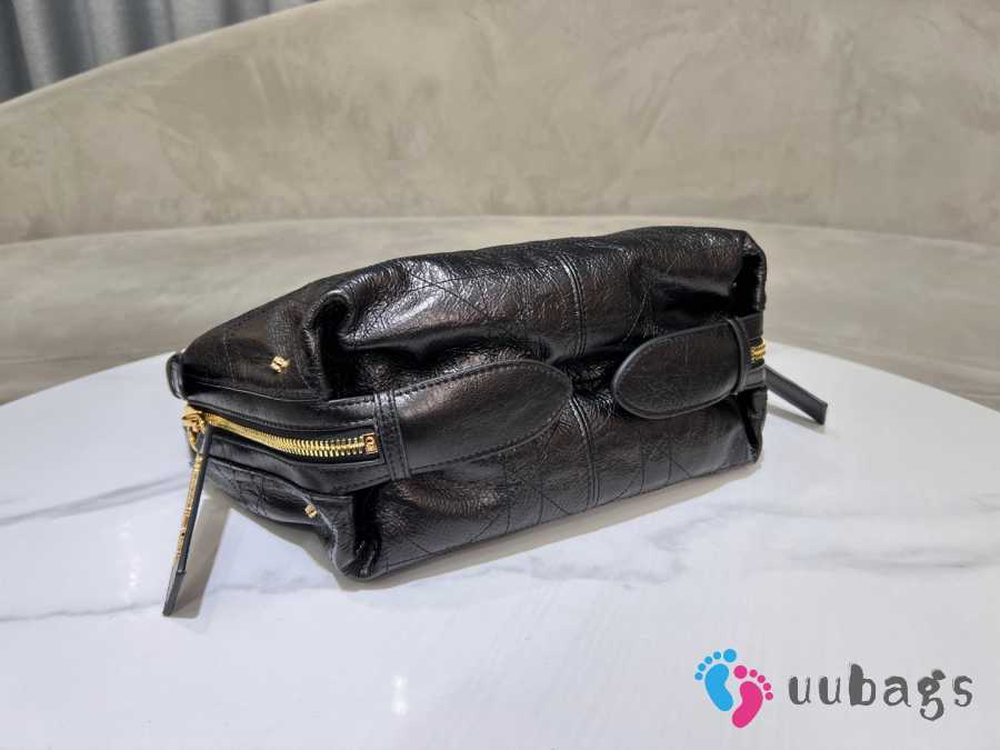 Uubags Dior Medium D-Journey Bag in Crinkled Calfskin Black Flat Macrocannage 33x16x15cm