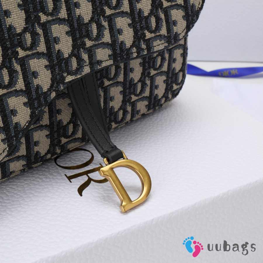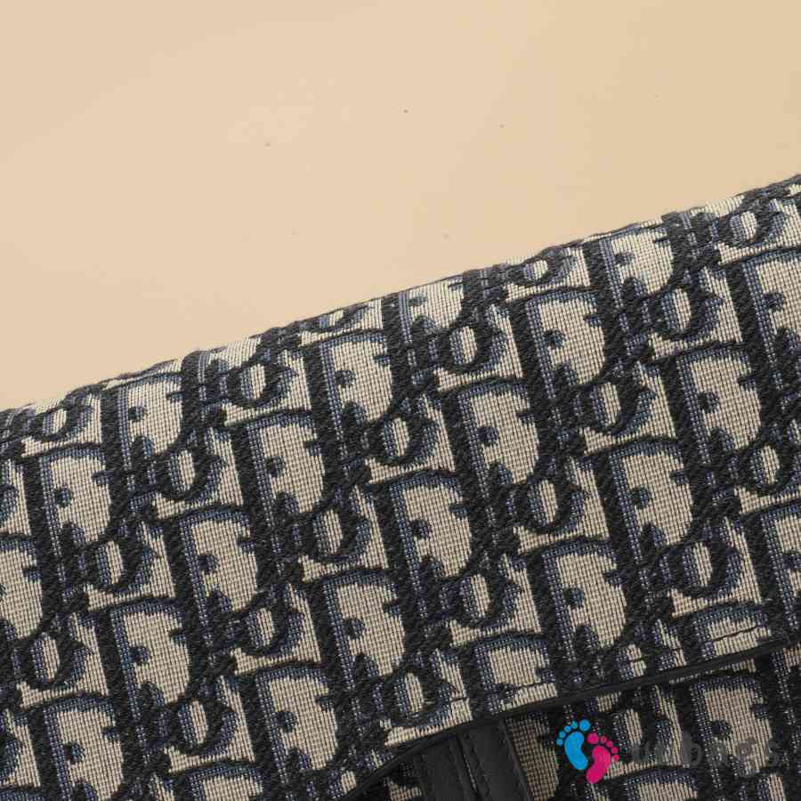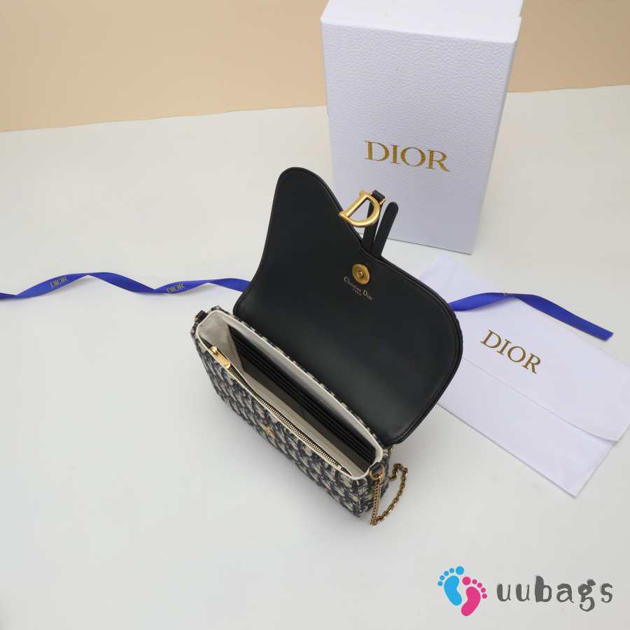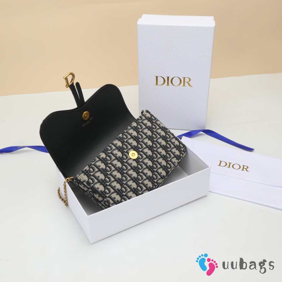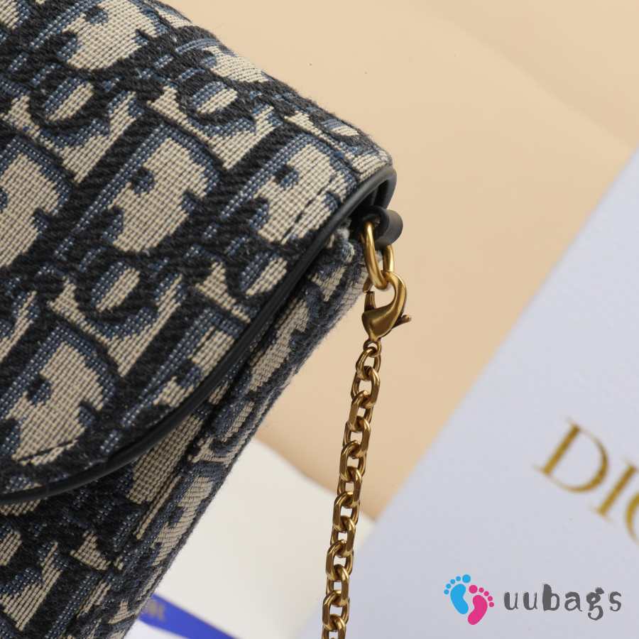 Uubags Dior Medium Saddle Pouch With Chain In Blue Dior Oblique Jacquard 21.5x13.5x4.5cm