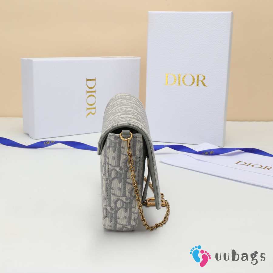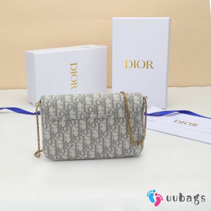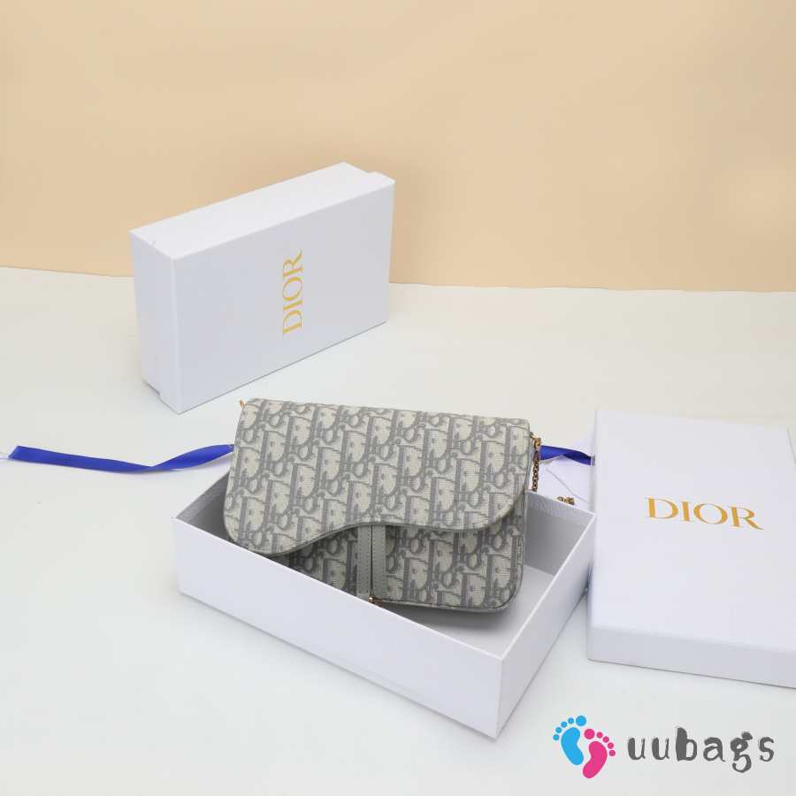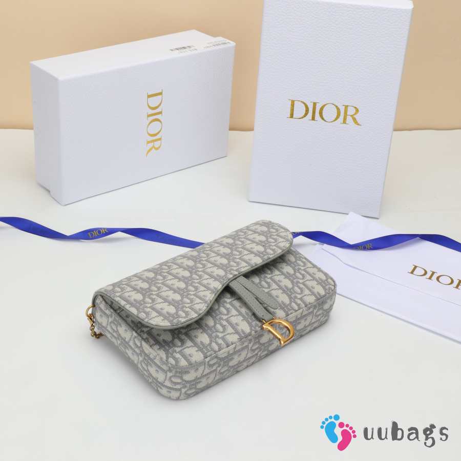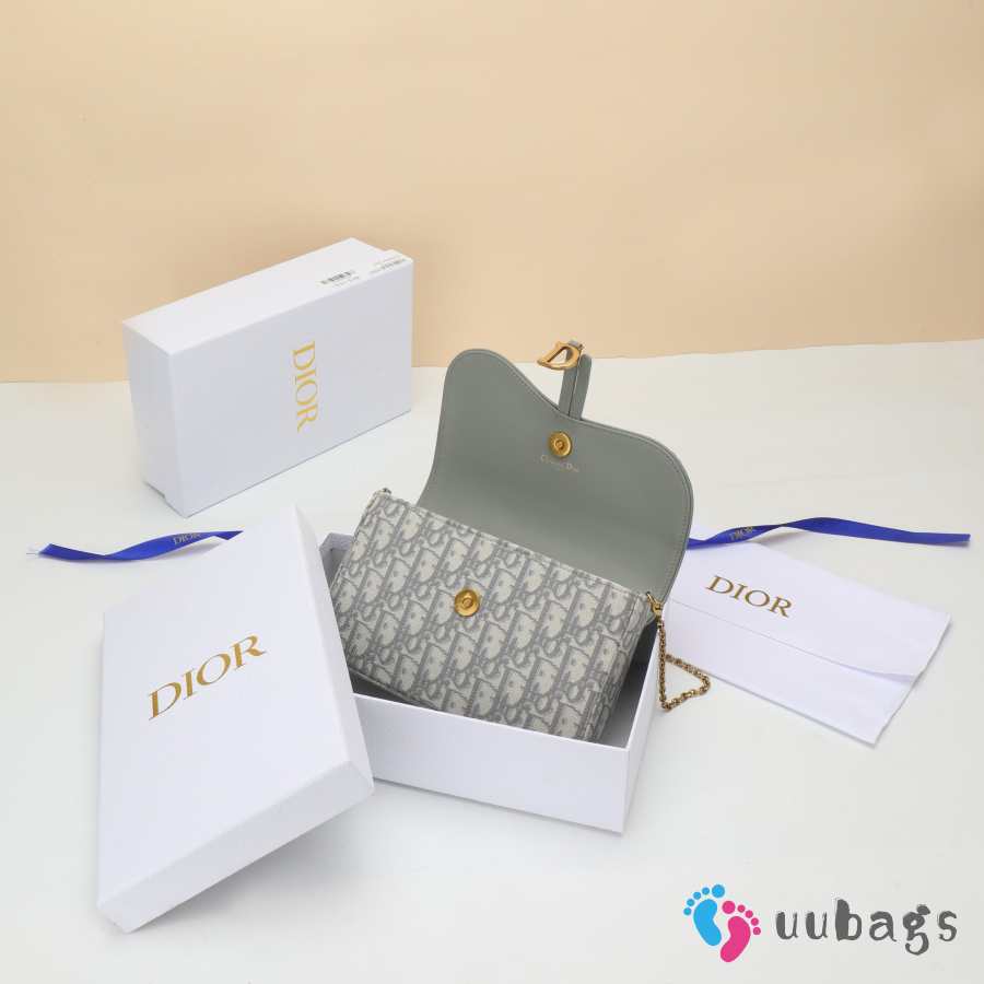Uubags Dior Medium Saddle Pouch With Chain In Grey Dior Oblique Jacquard 21.5x13.5x4.5cm
