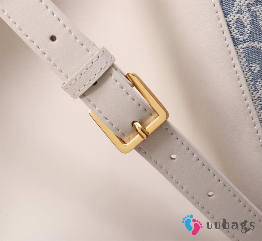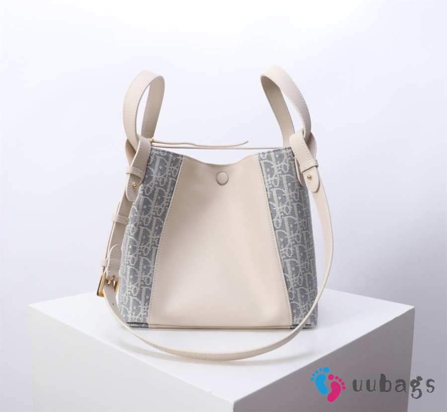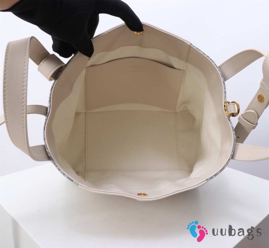 Uubags Dior Medium Signature Bucket Bag Blue Dior Oblique Chambray with Raffia Effect and Light Biscuit Smooth Calfskin