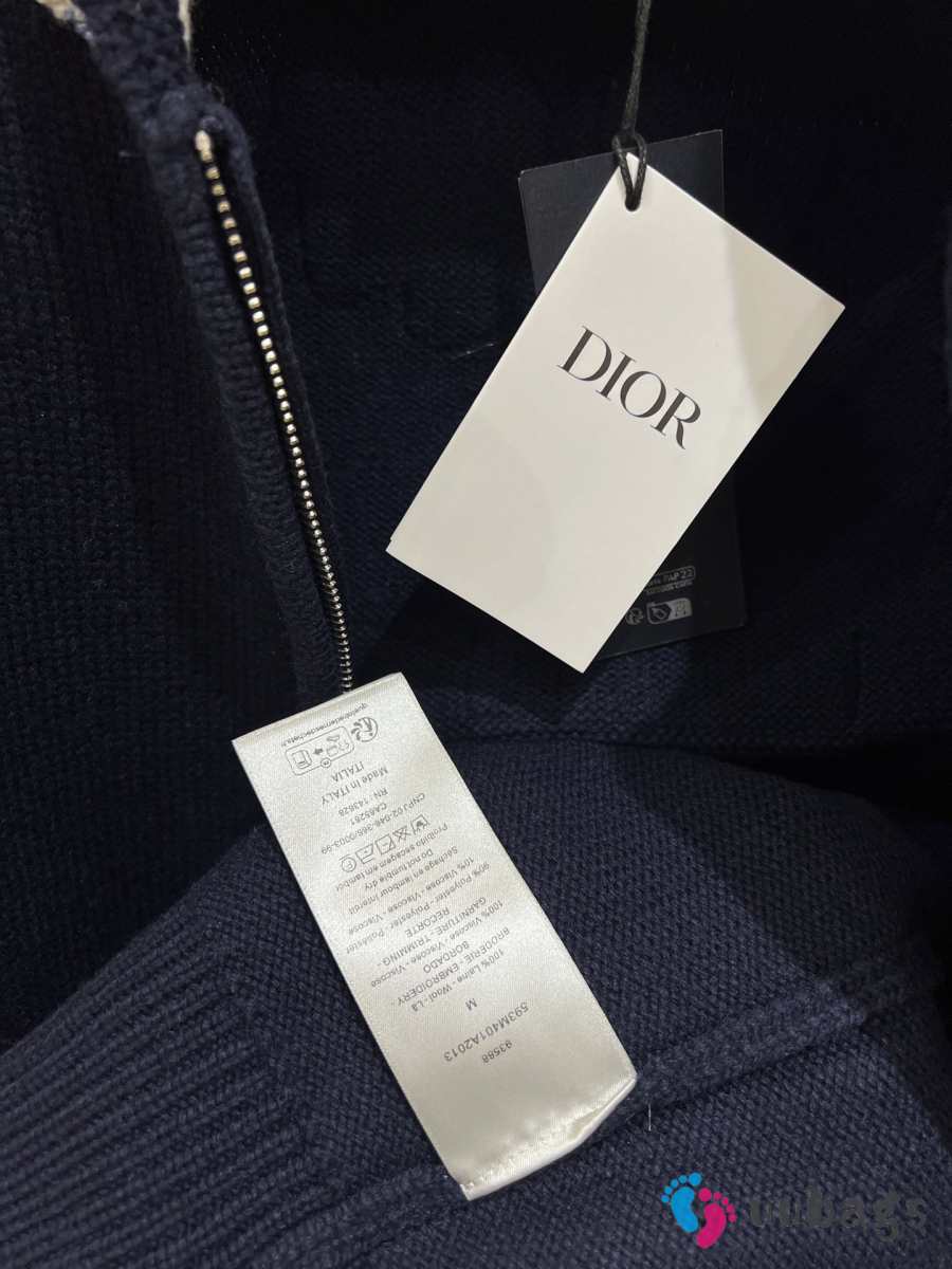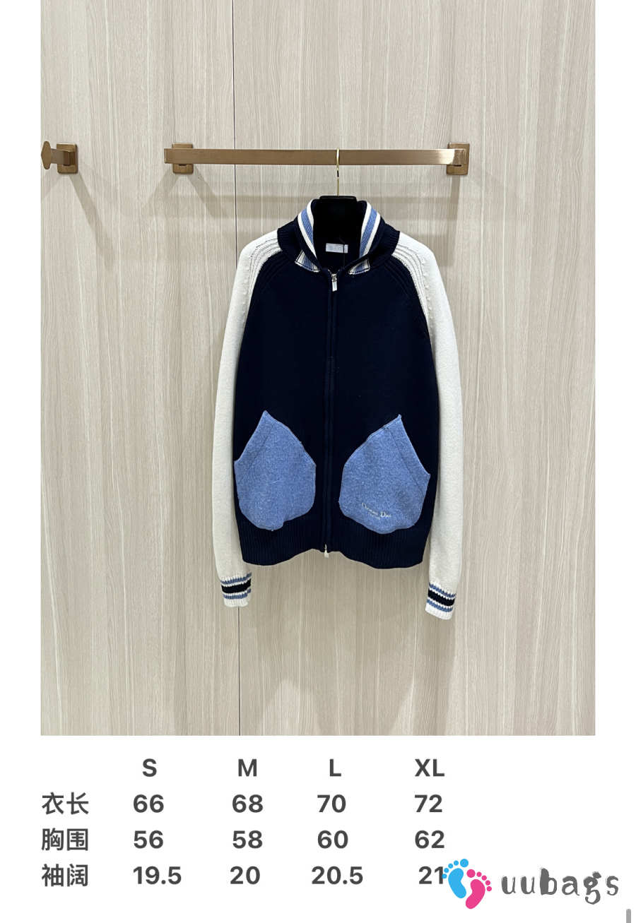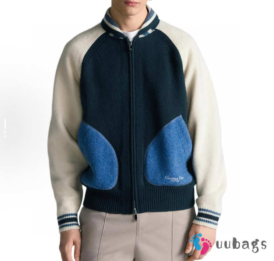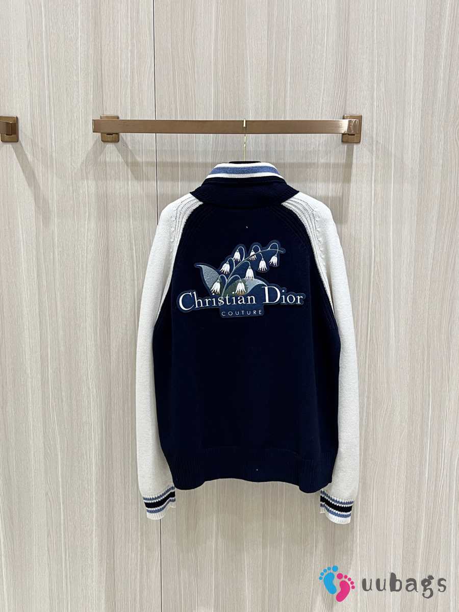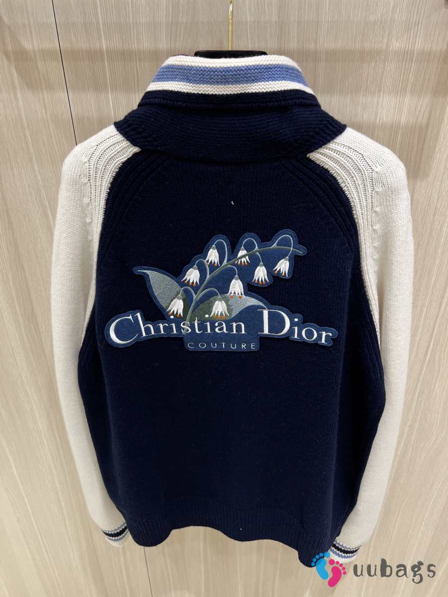 Uubags Dior preppy cardigan couture blue and beige jersey felt with lily-of-the-valley embroidery