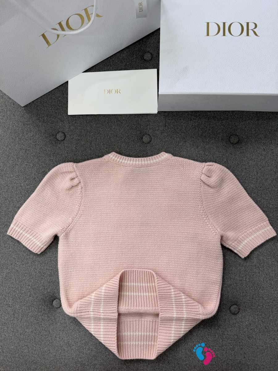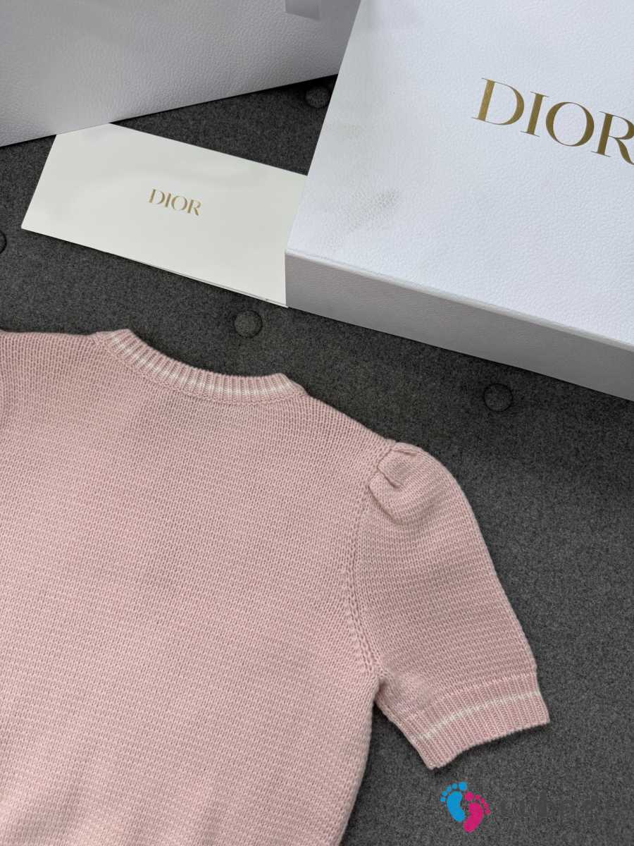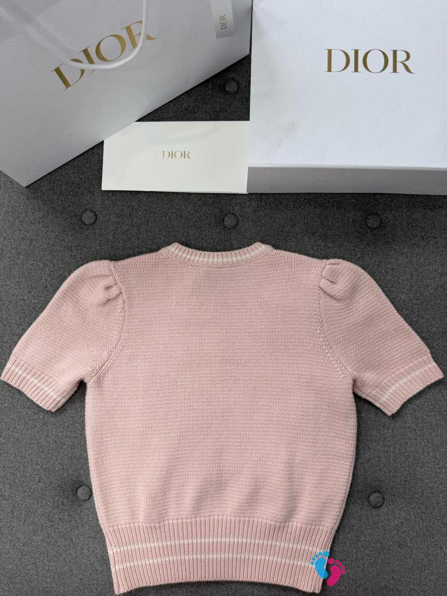 Uubags Dior Short-Sleeved Sweater Pink Virgin Wool-Cashmere Knit
