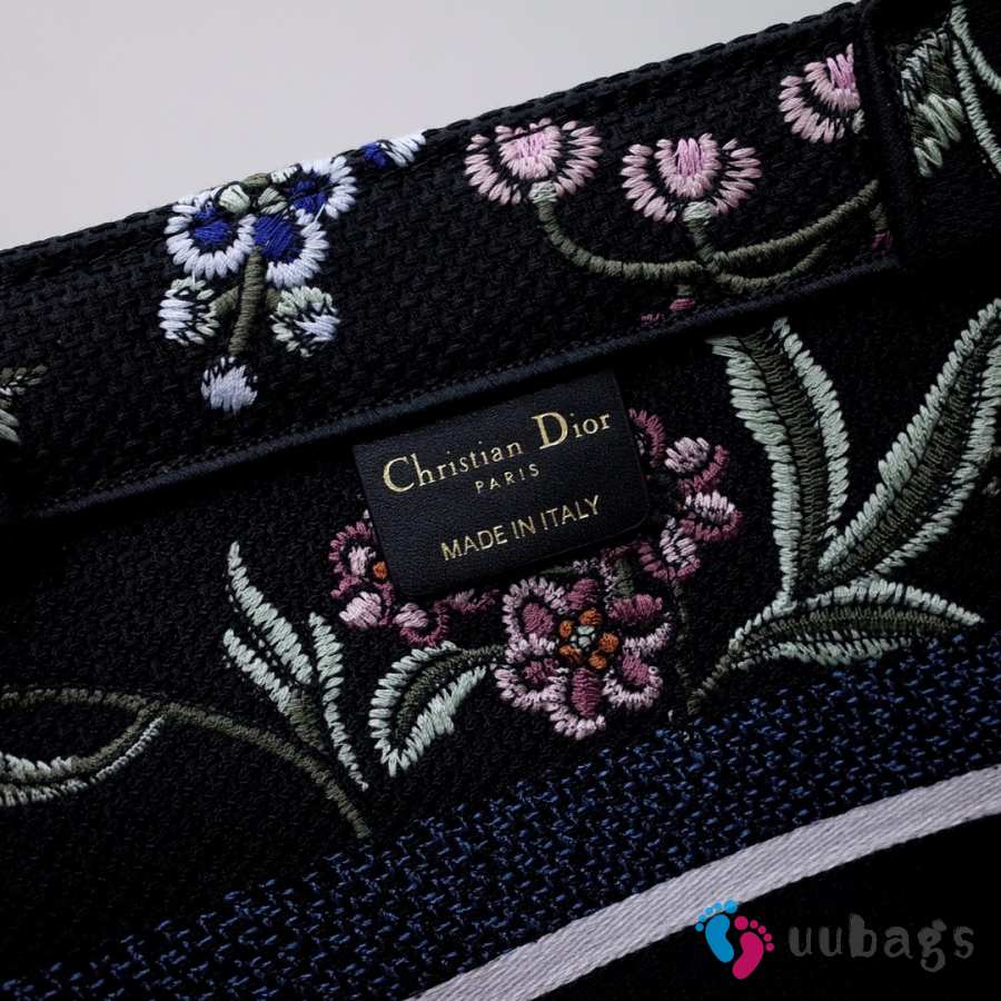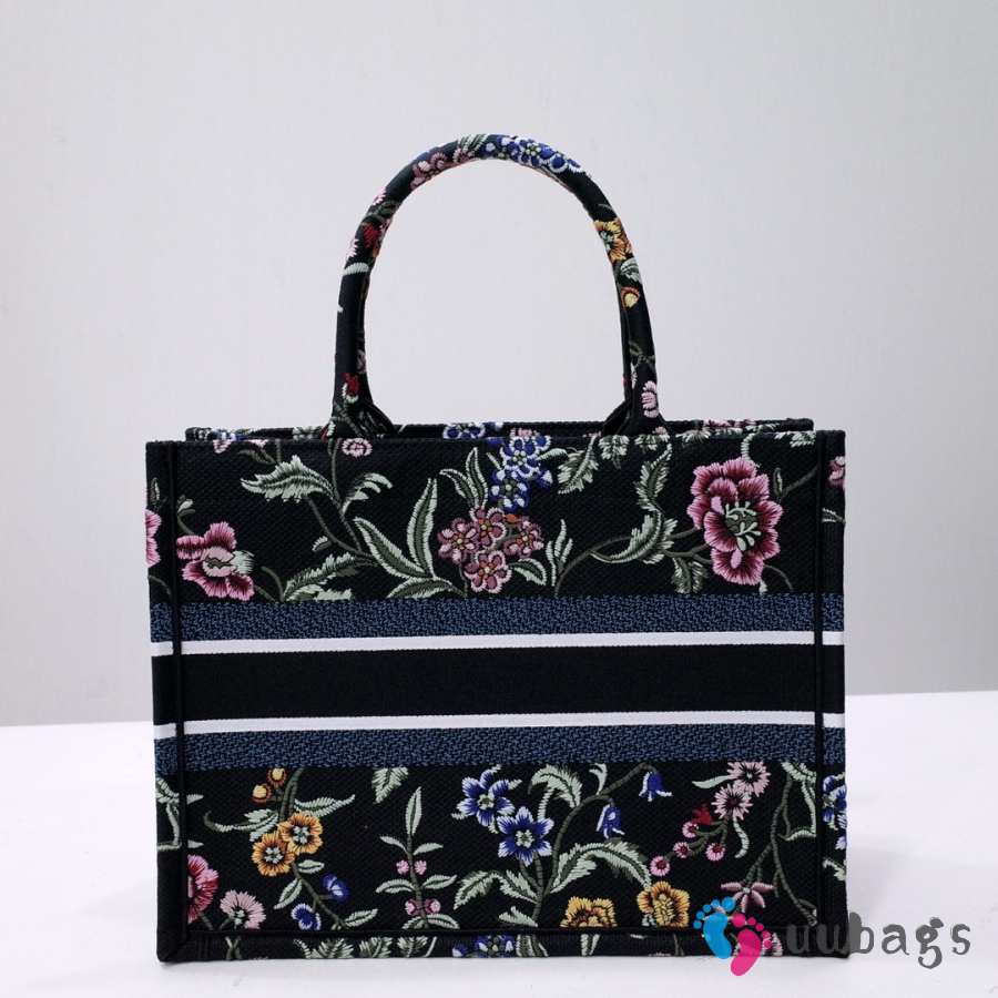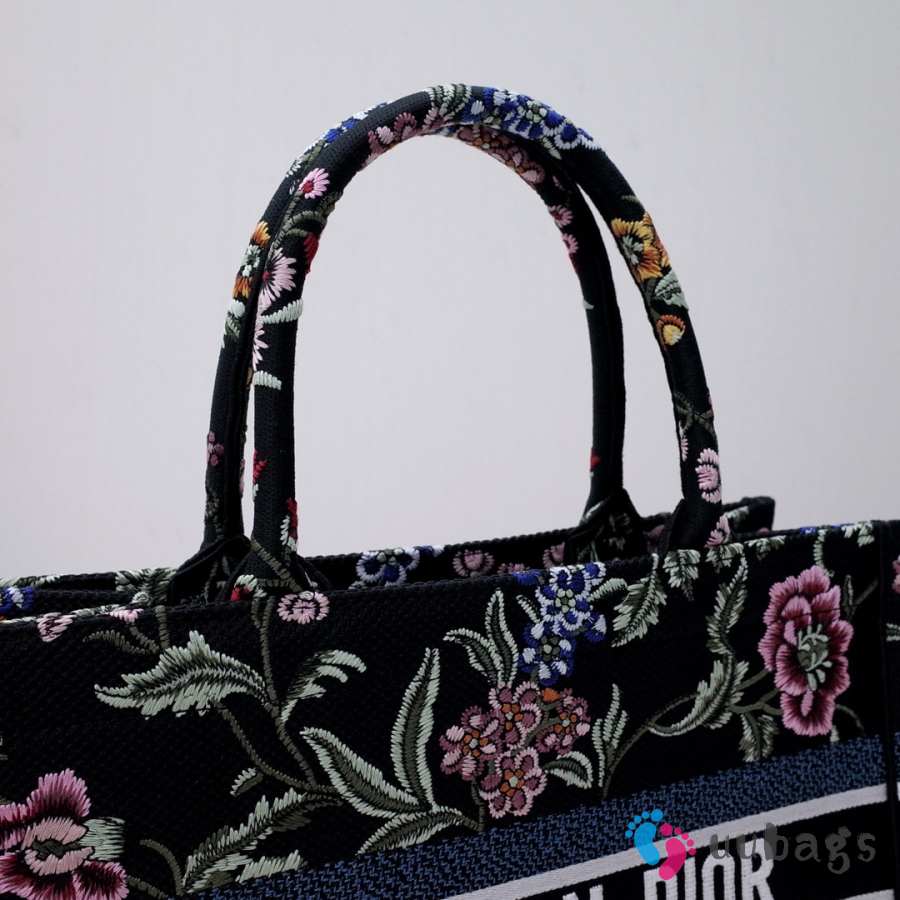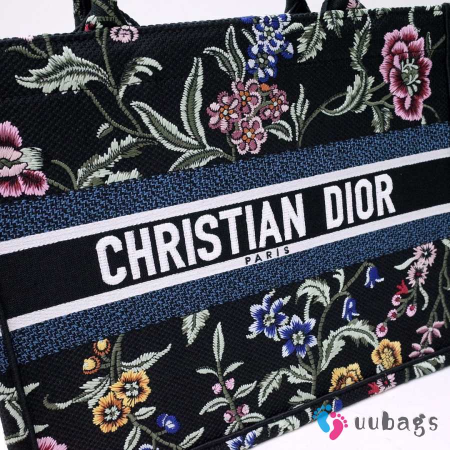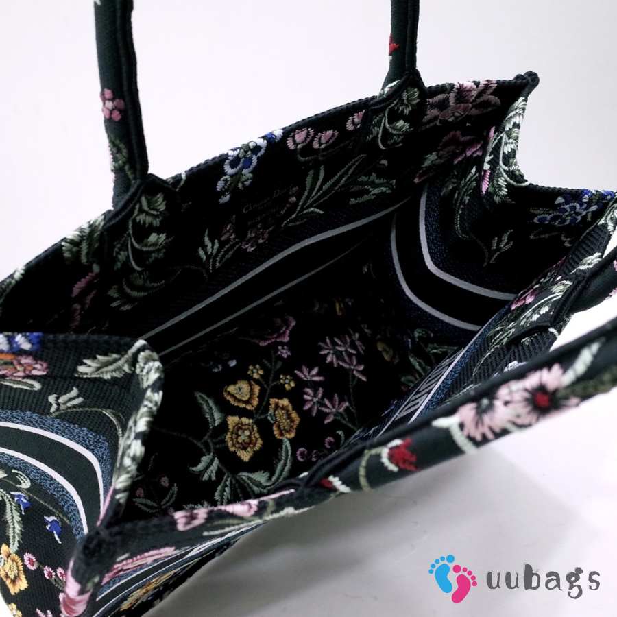 Uubags Dior Small Book Tote Floral Embroidery In Black Multicolor 26.5x21x14cm