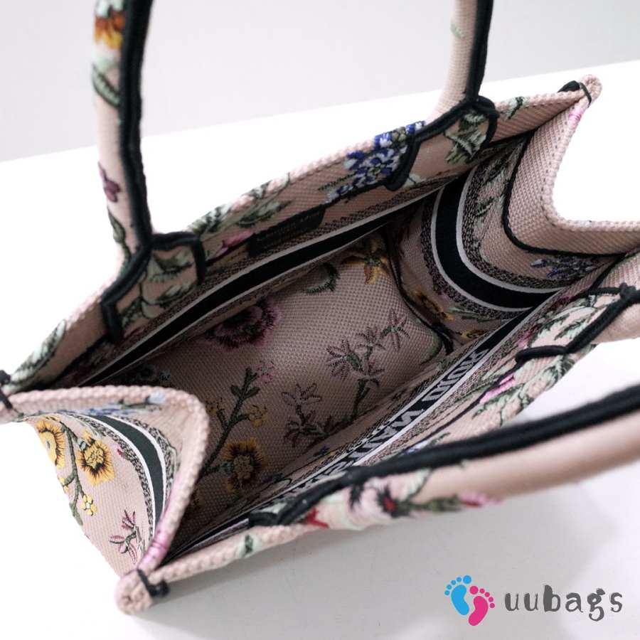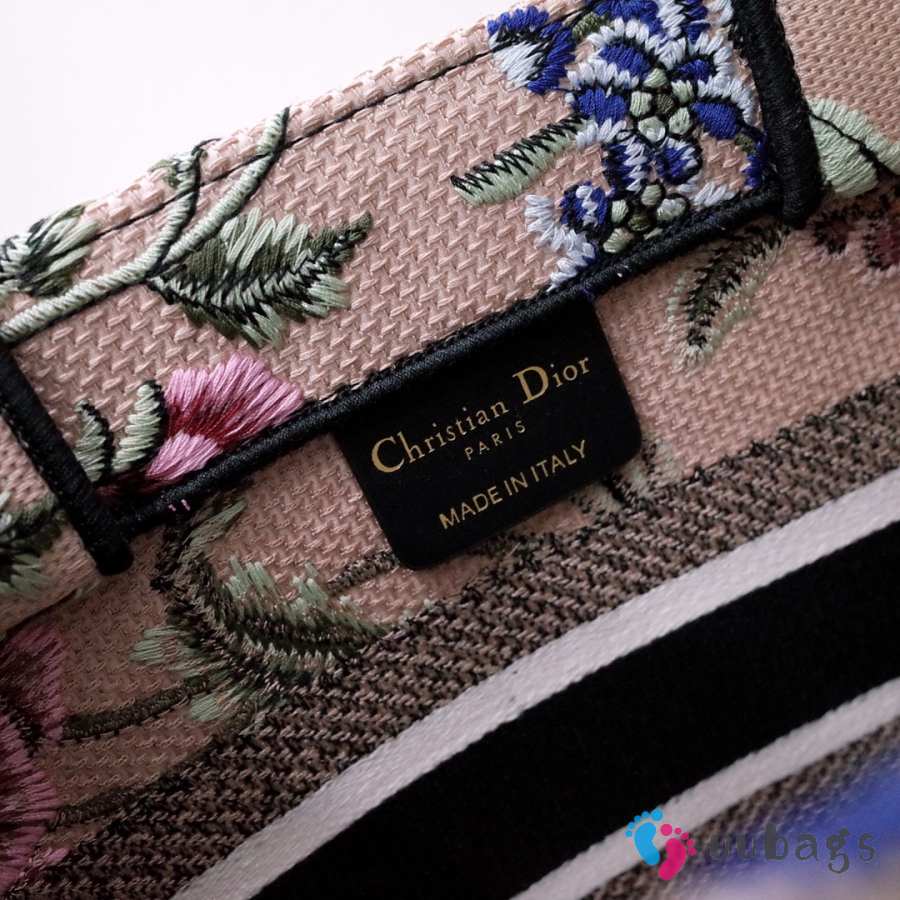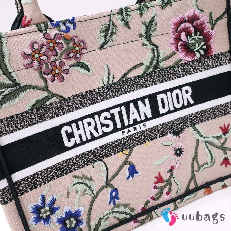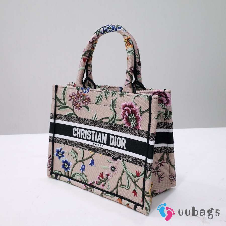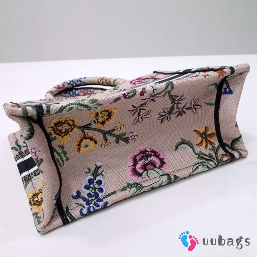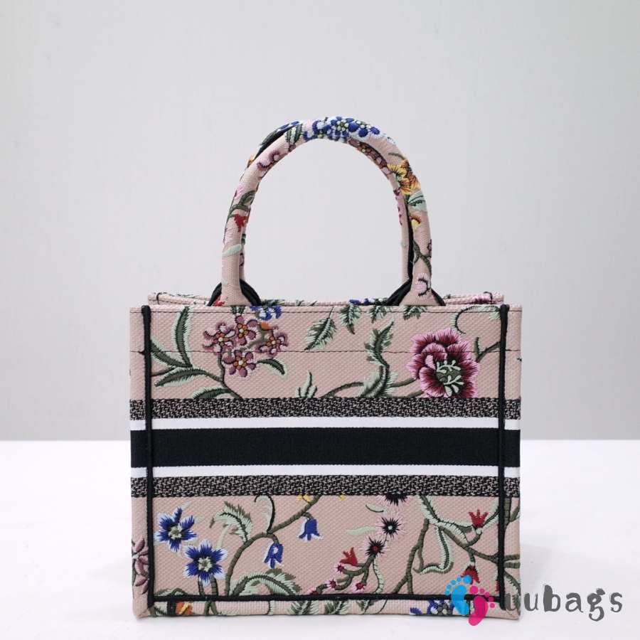 Uubags Dior Small Book Tote Floral Embroidery In Pink Multicolor 26.5x21x14cm