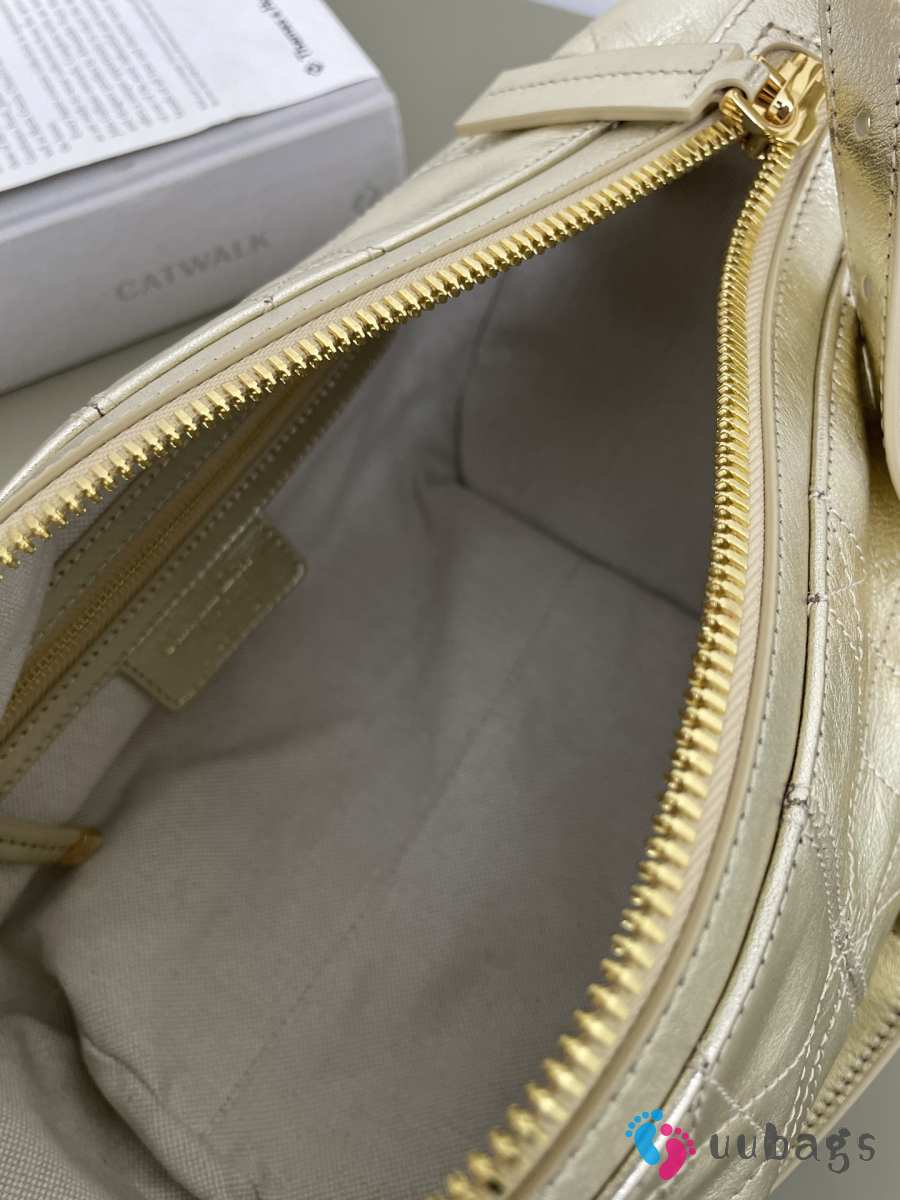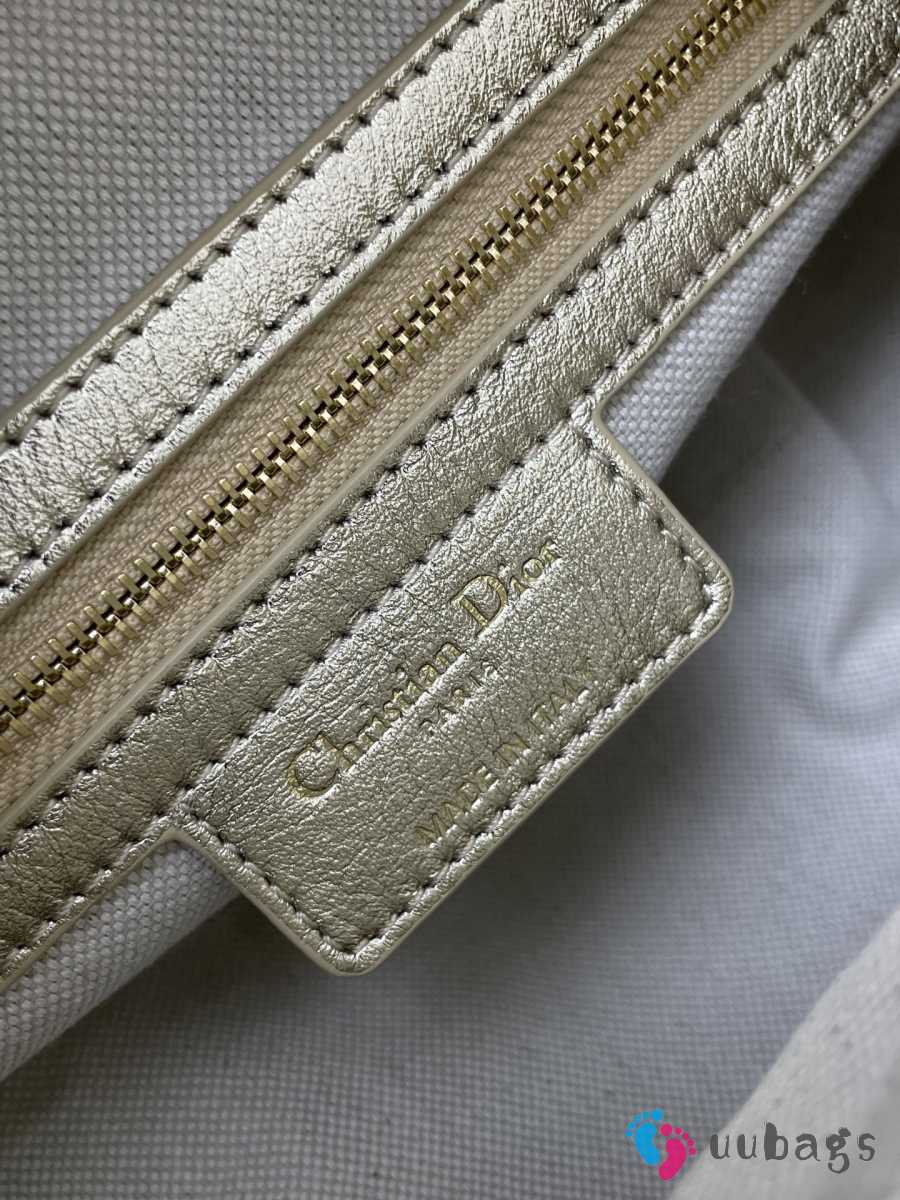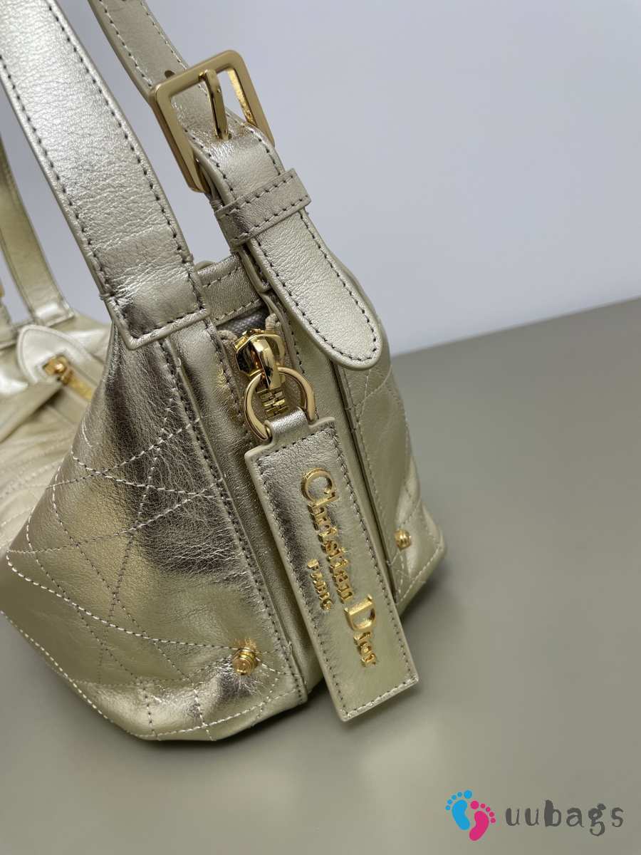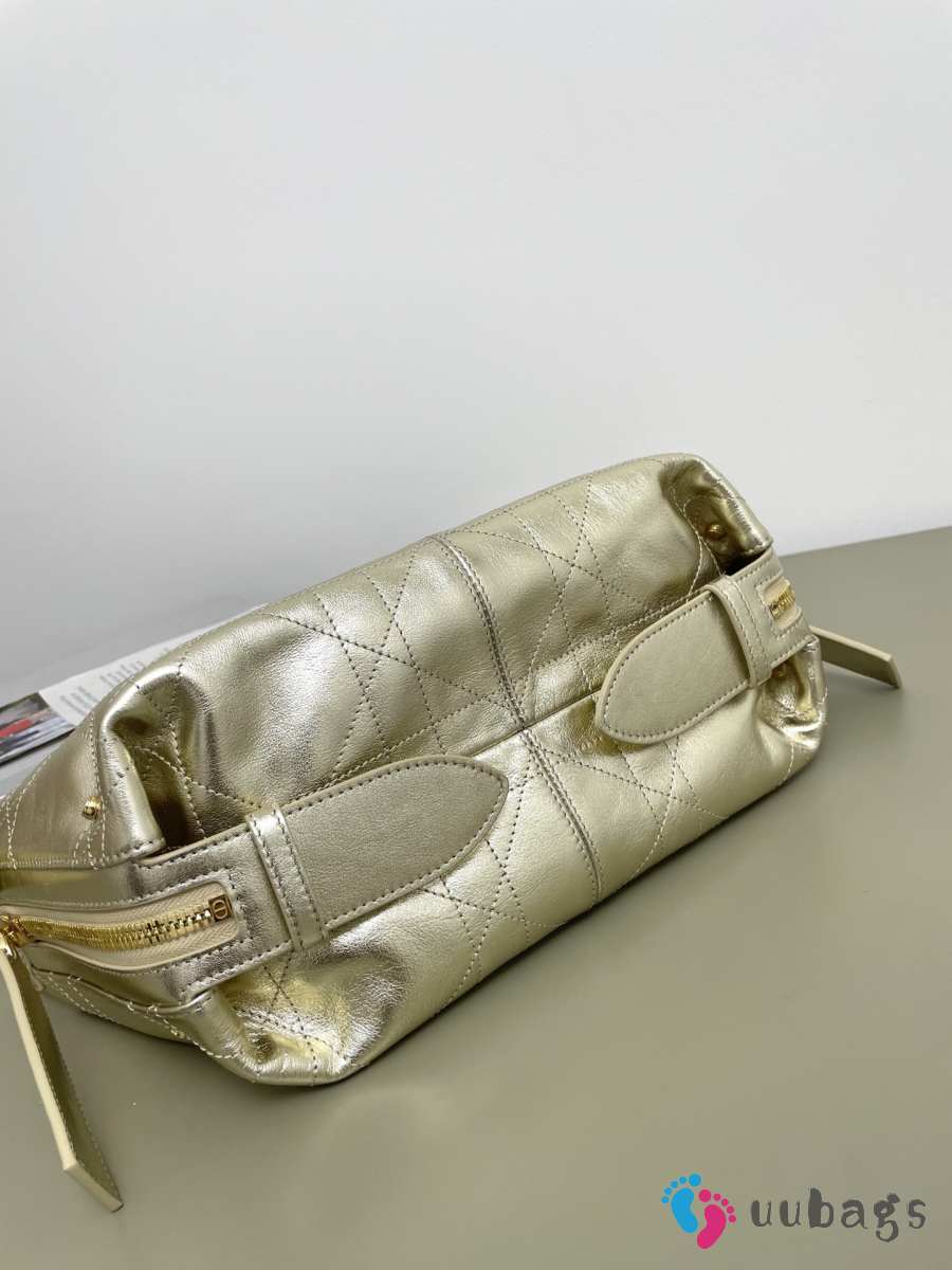 Uubags Dior Small D-Journey Bag in Crinkled Calfskin Metallic Gold-Tone Flat Macrocannage 25.5x14.5x14cm