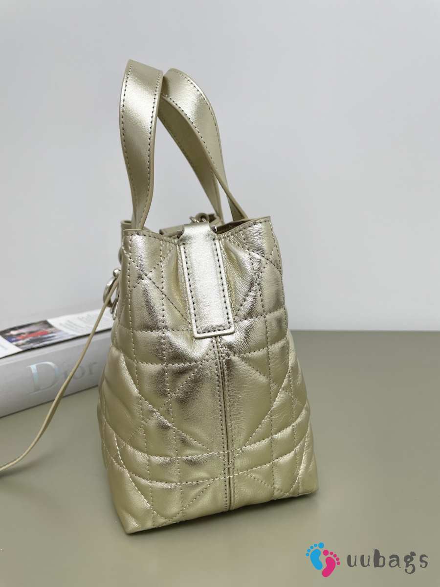 Uubags Dior Small Toujours Bag Metallic Gold-Tone Macrocannage Calfskin 18.5x18.5x12cm