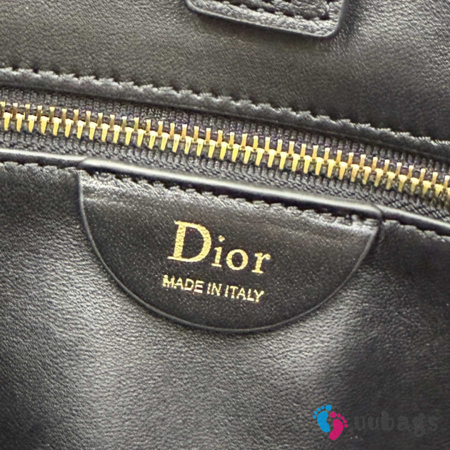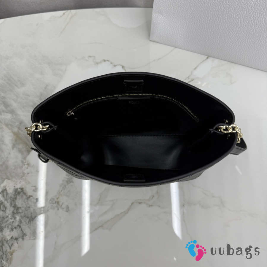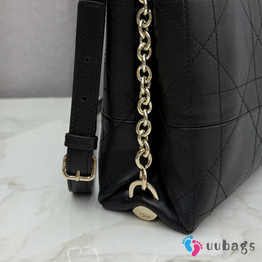 Uubags Dior Trianon Bag with Chain Black Flat Macrocannage Lambskin 25x21x7cm