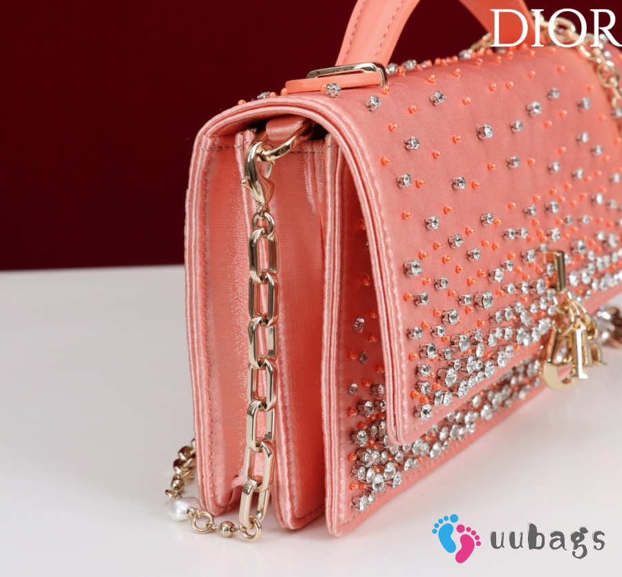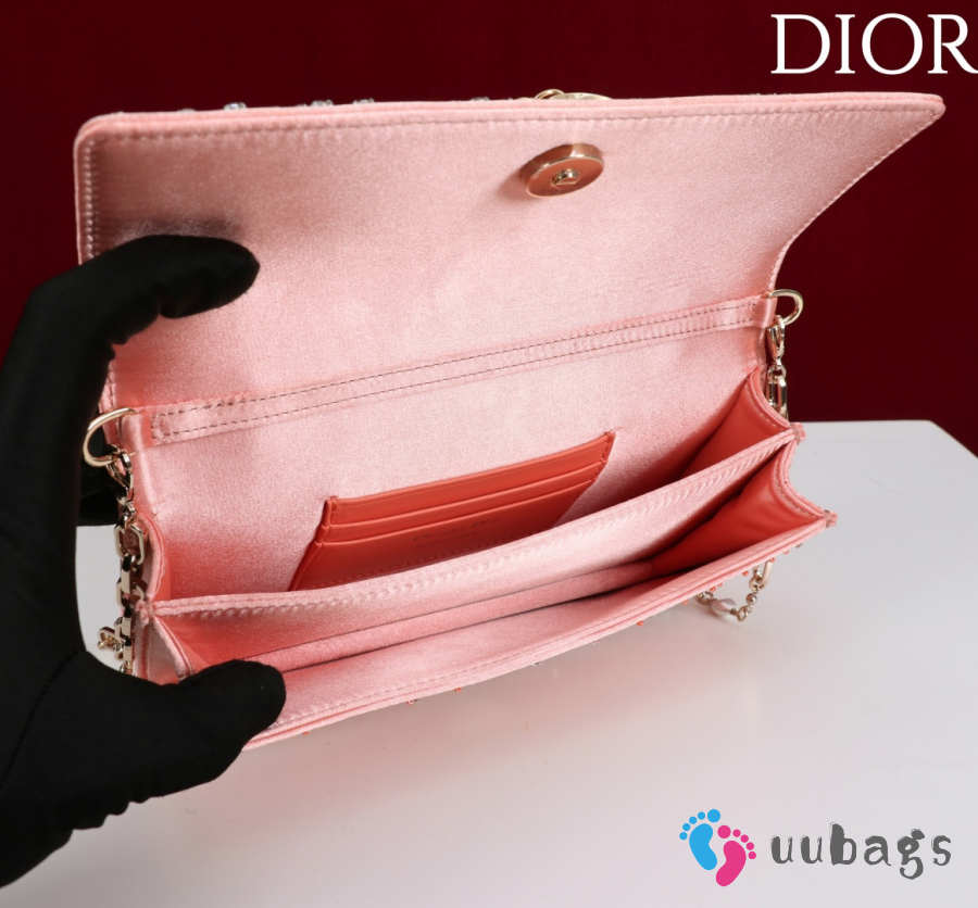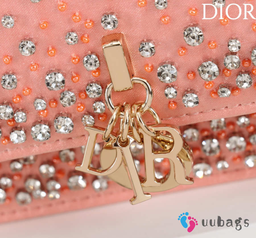 Dior Lady micro embroidered honey beads bag in pink 12x10.2x5cm