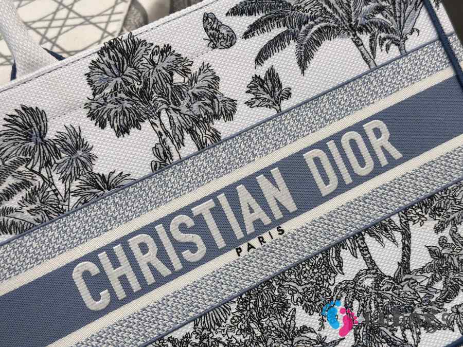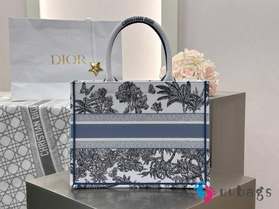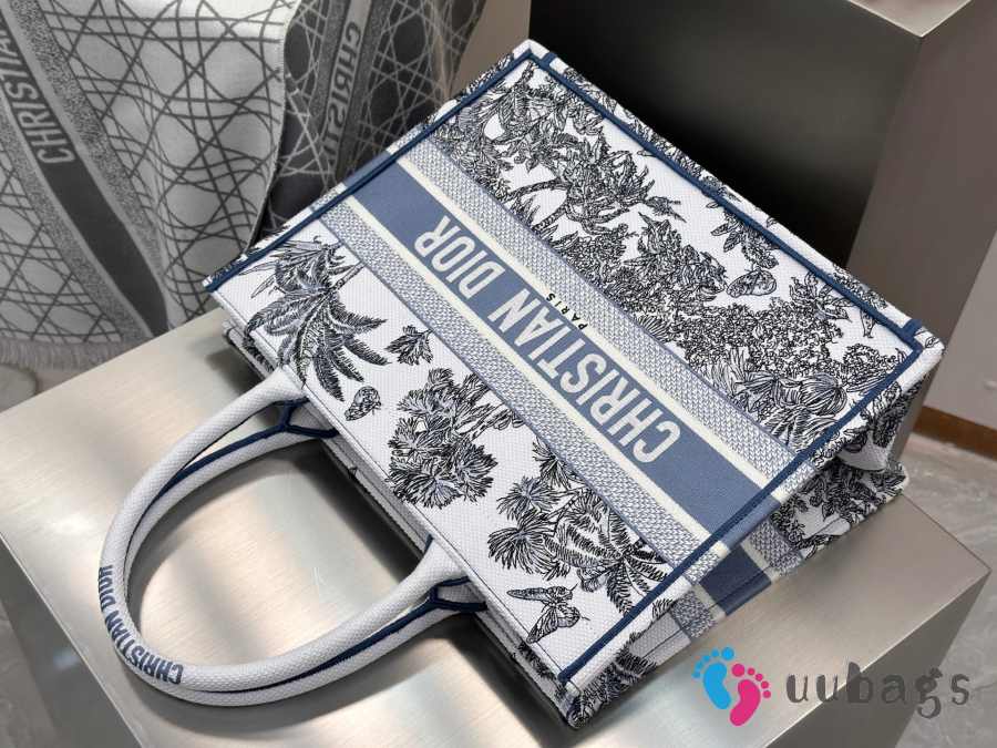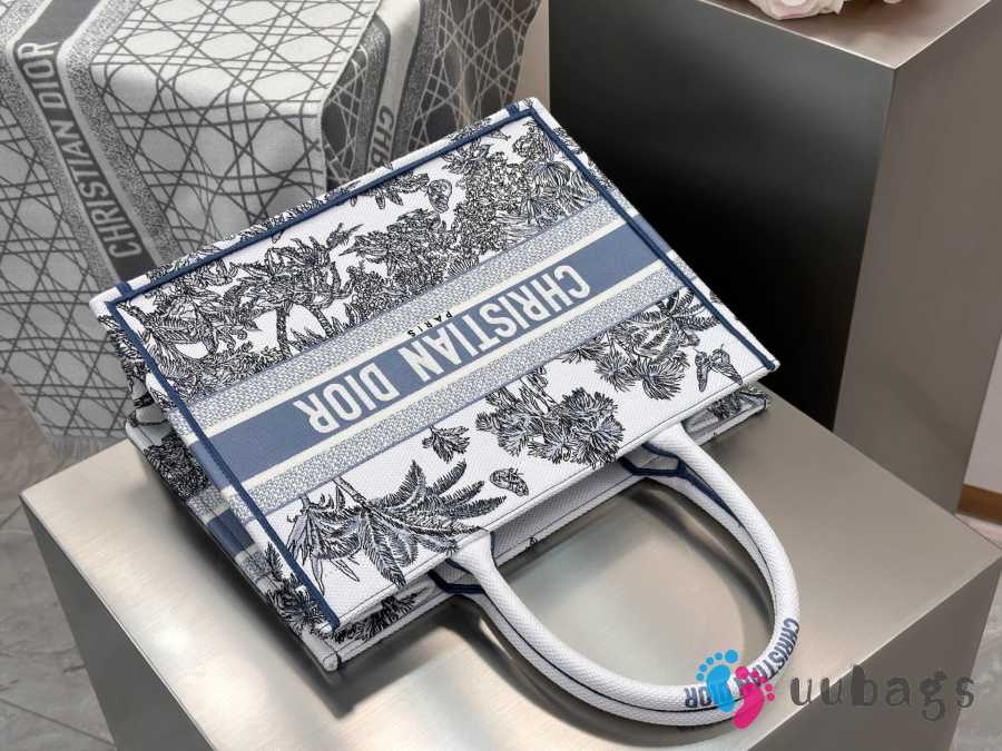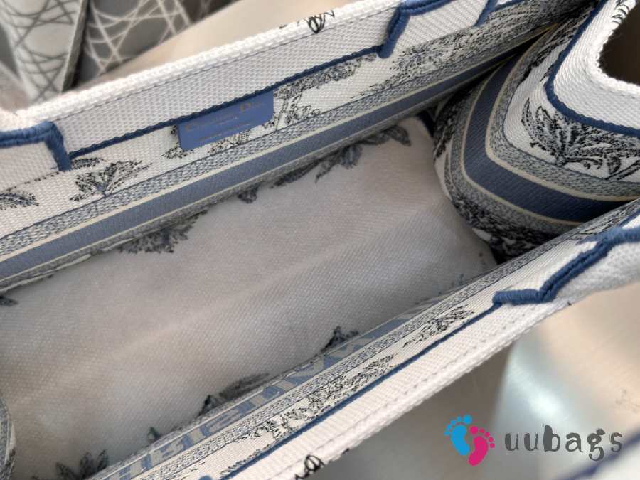 Uubags Dioriviera Medium Dior Book Tote Bag White and Blue Toile de Jouy Palms Embroidery 36x27.5x16.5cm