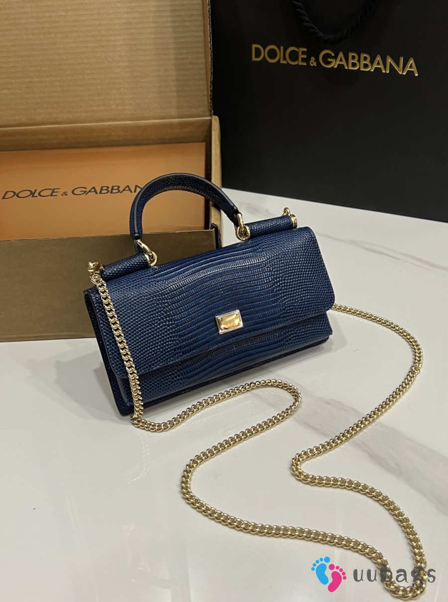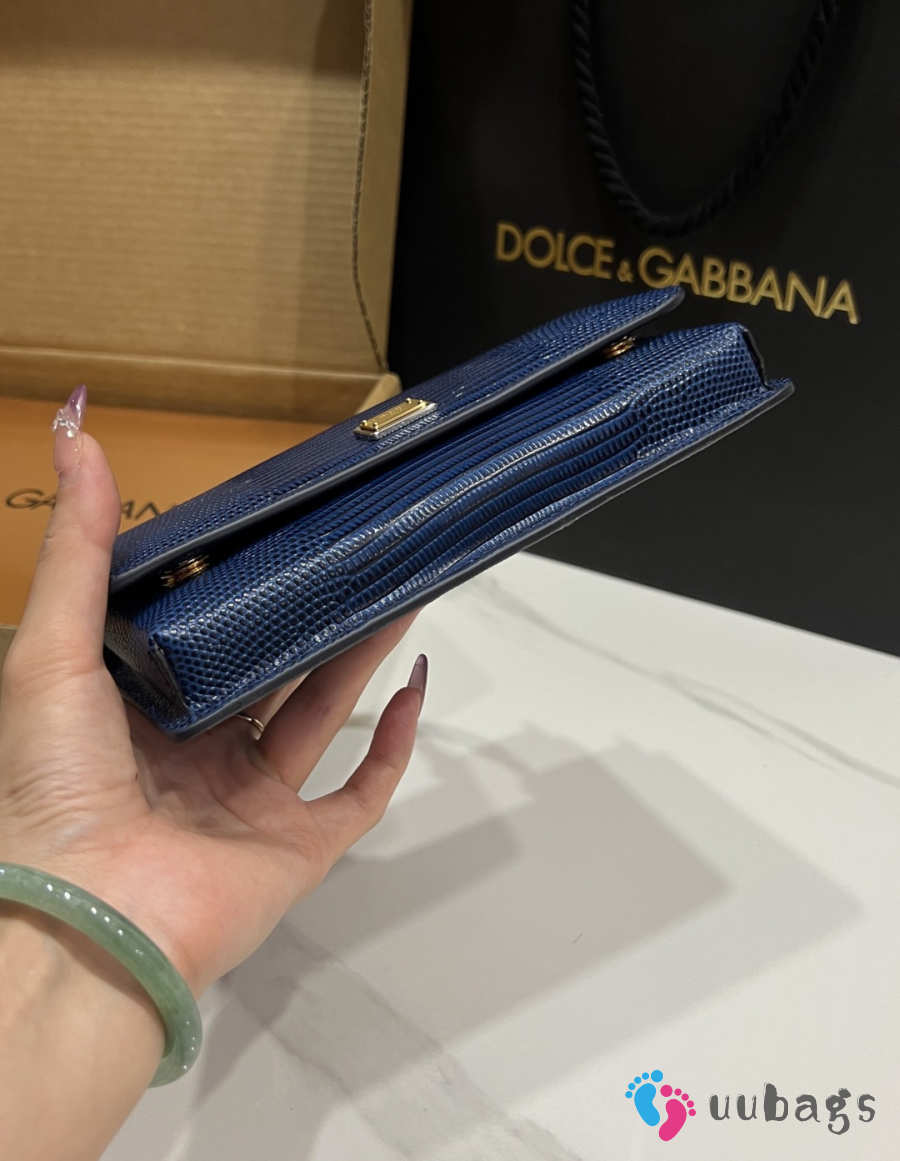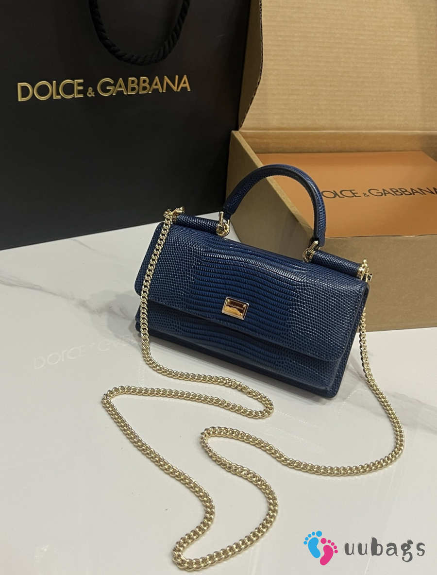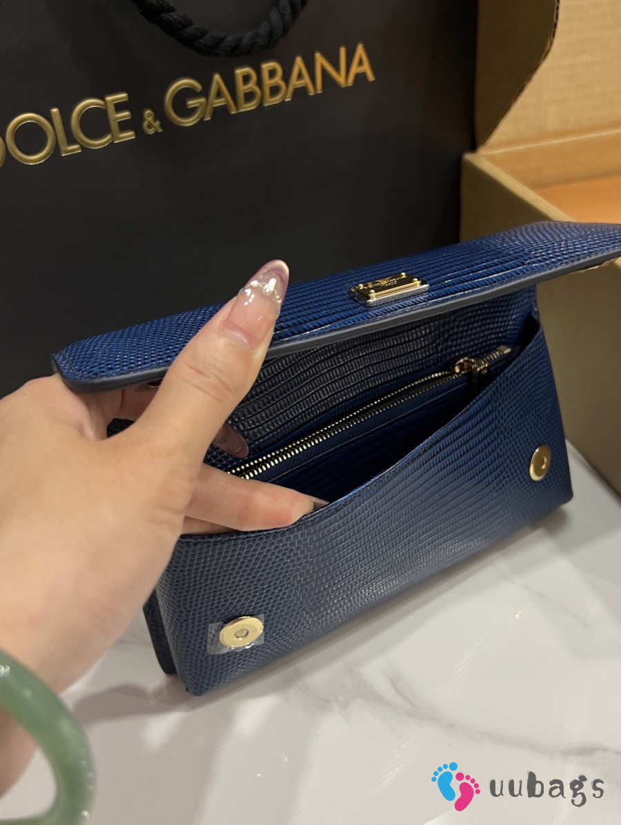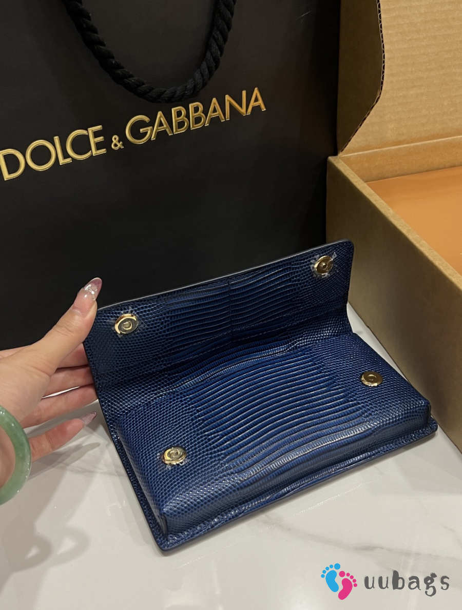 Uubags Dolce & Gabbana Iguana-print calfskin mini bag in navy blue 11x20x3cm