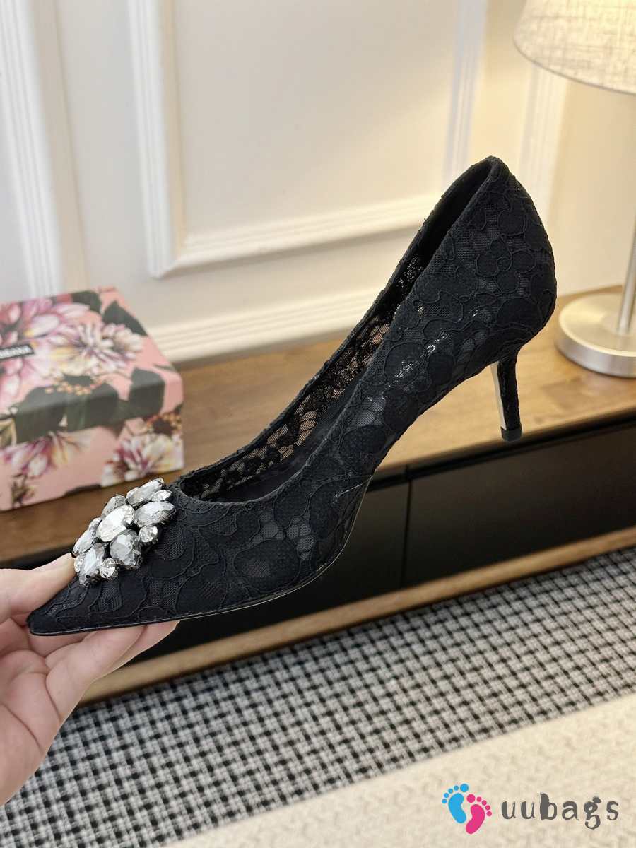Uubags Dolce & Gabbana Rainbow lace pumps in lurex lace black 6.5cm