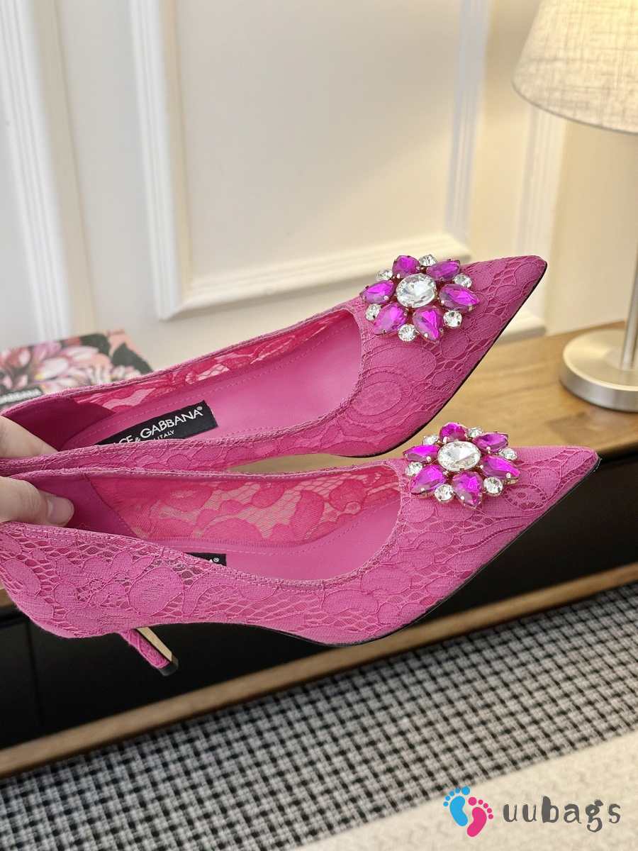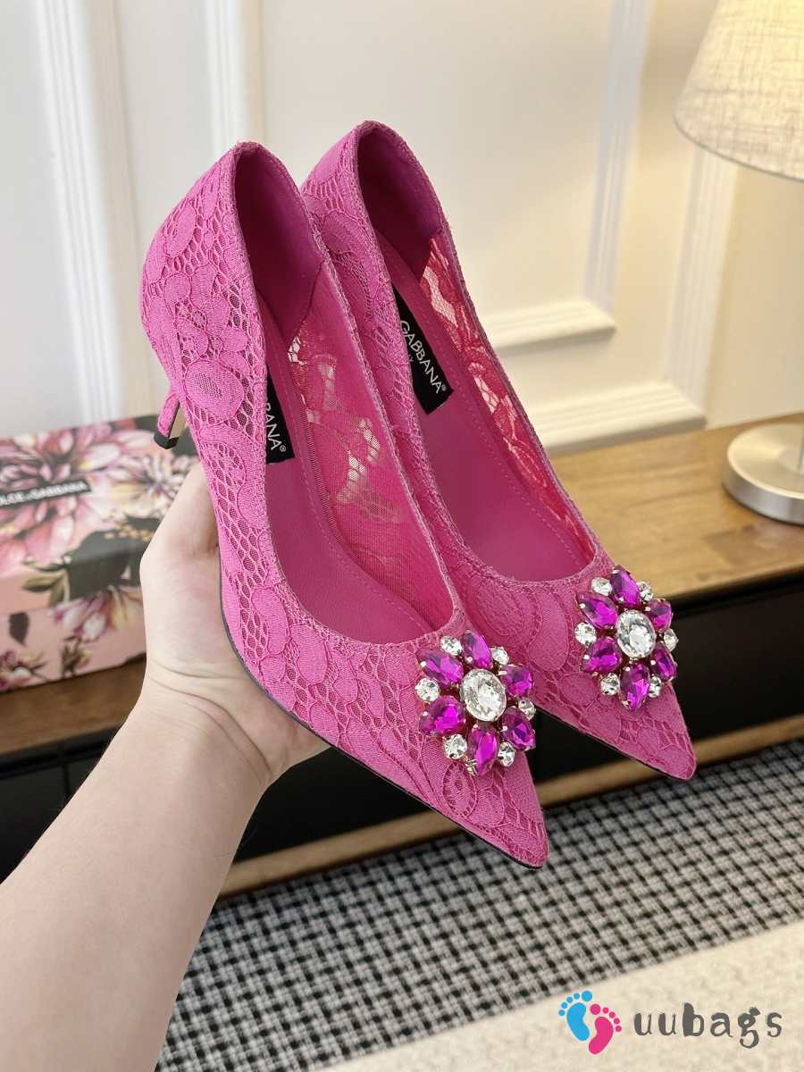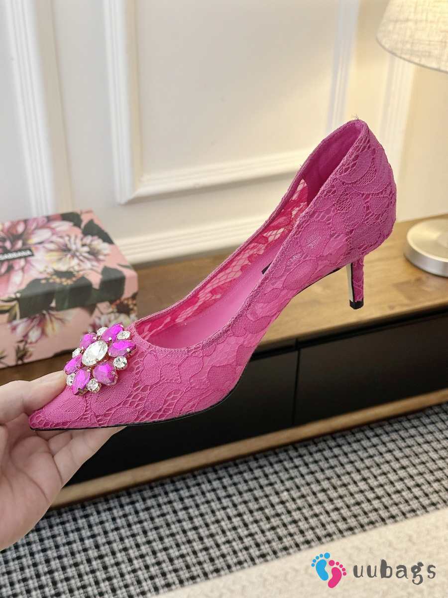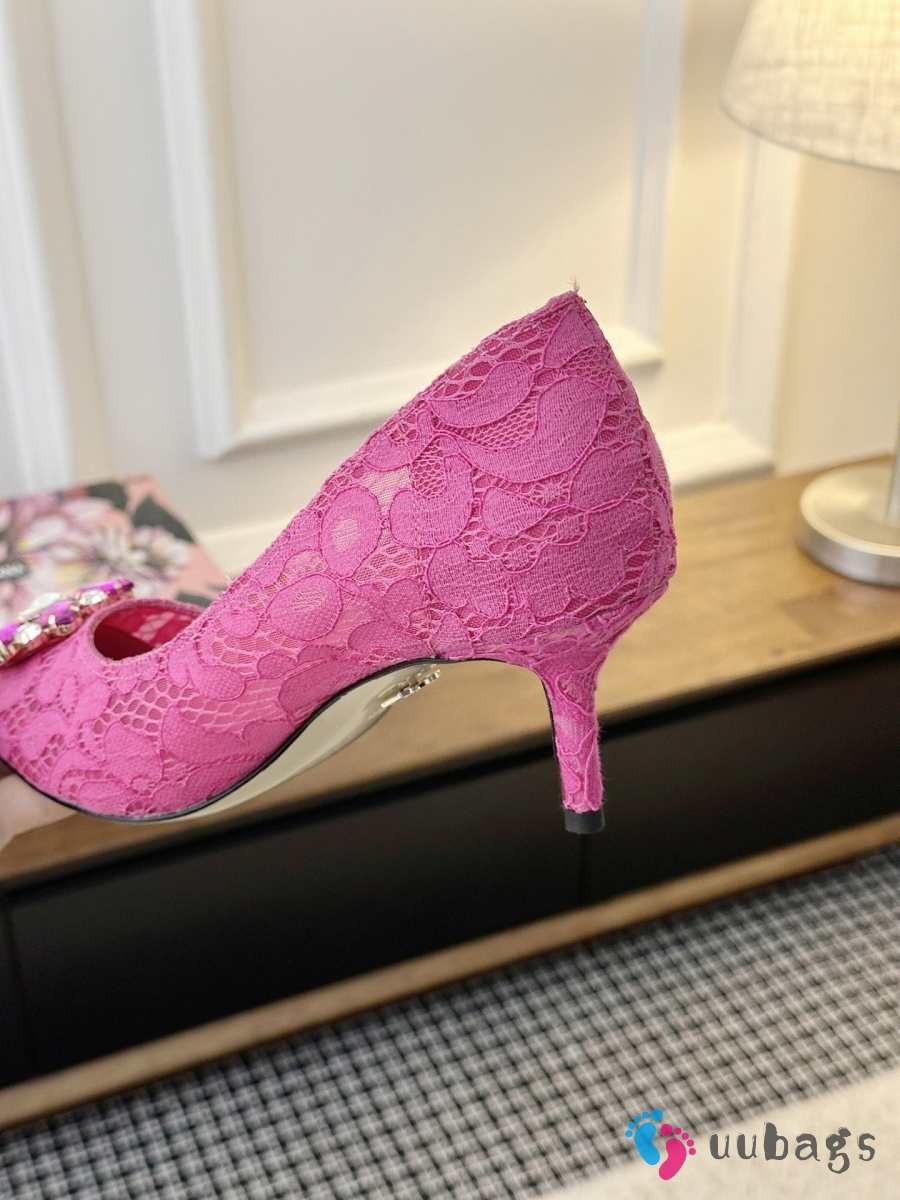 Uubags Dolce & Gabbana Rainbow lace pumps in lurex lace fuchsia 6.5cm