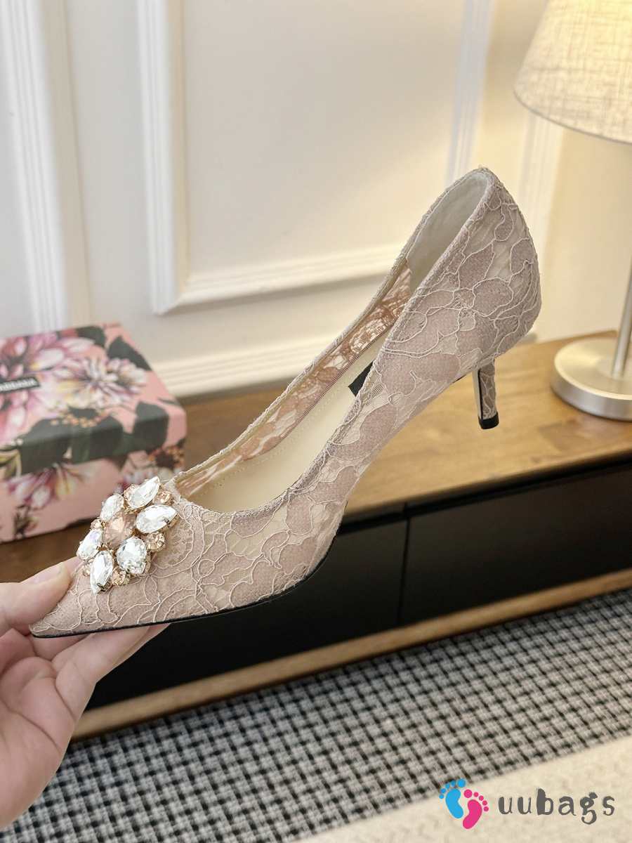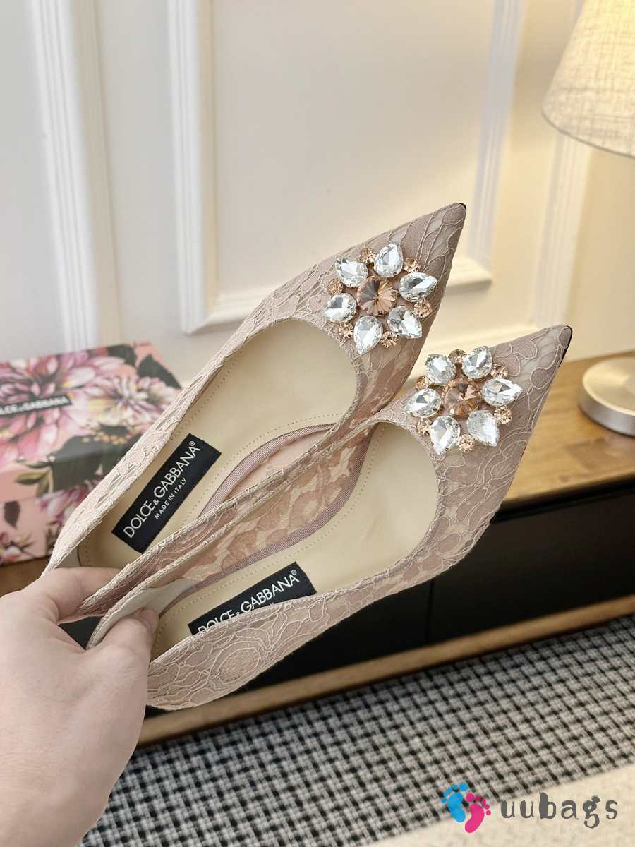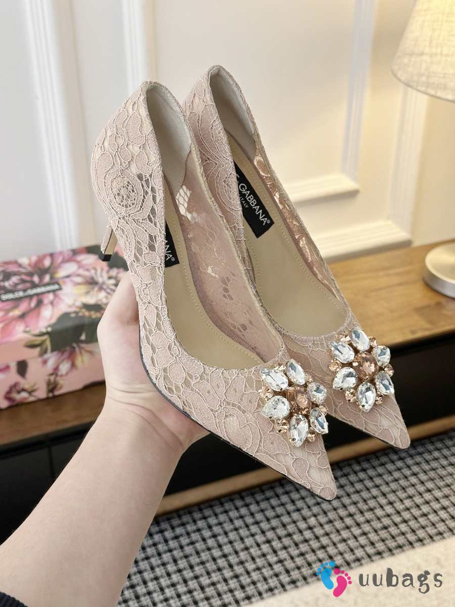 Uubags Dolce & Gabbana Rainbow lace pumps in lurex lace nude 6.5cm