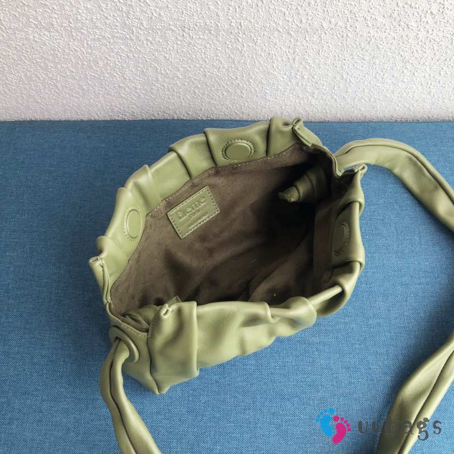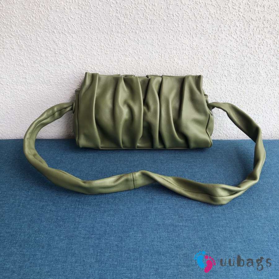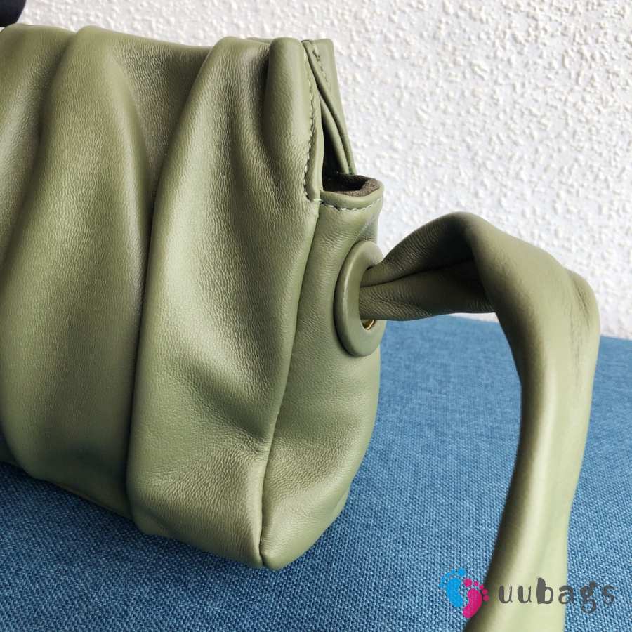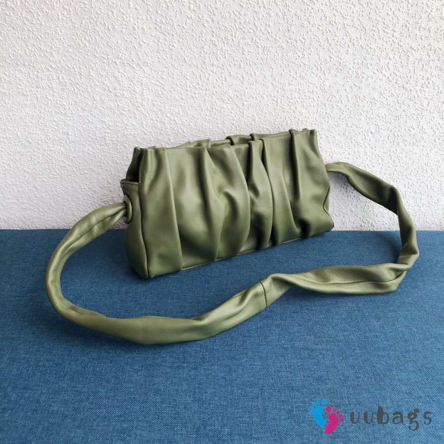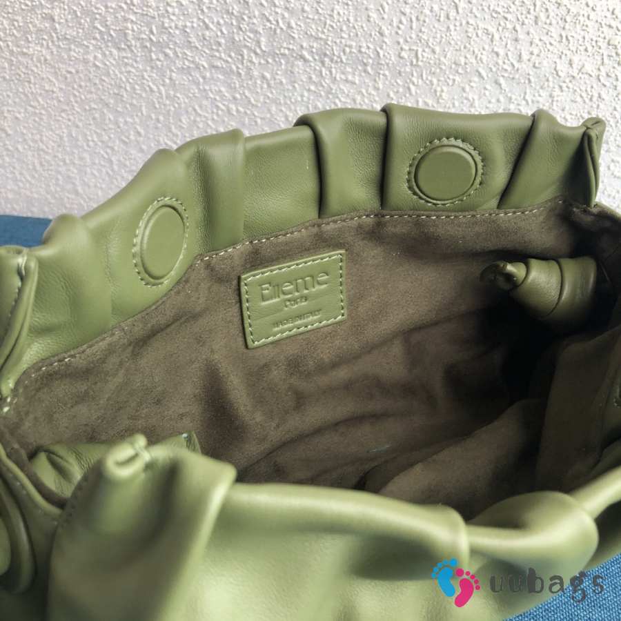 Uubags Elleme Vague pleated leather shoulder bag in green lambskin leather 26cm