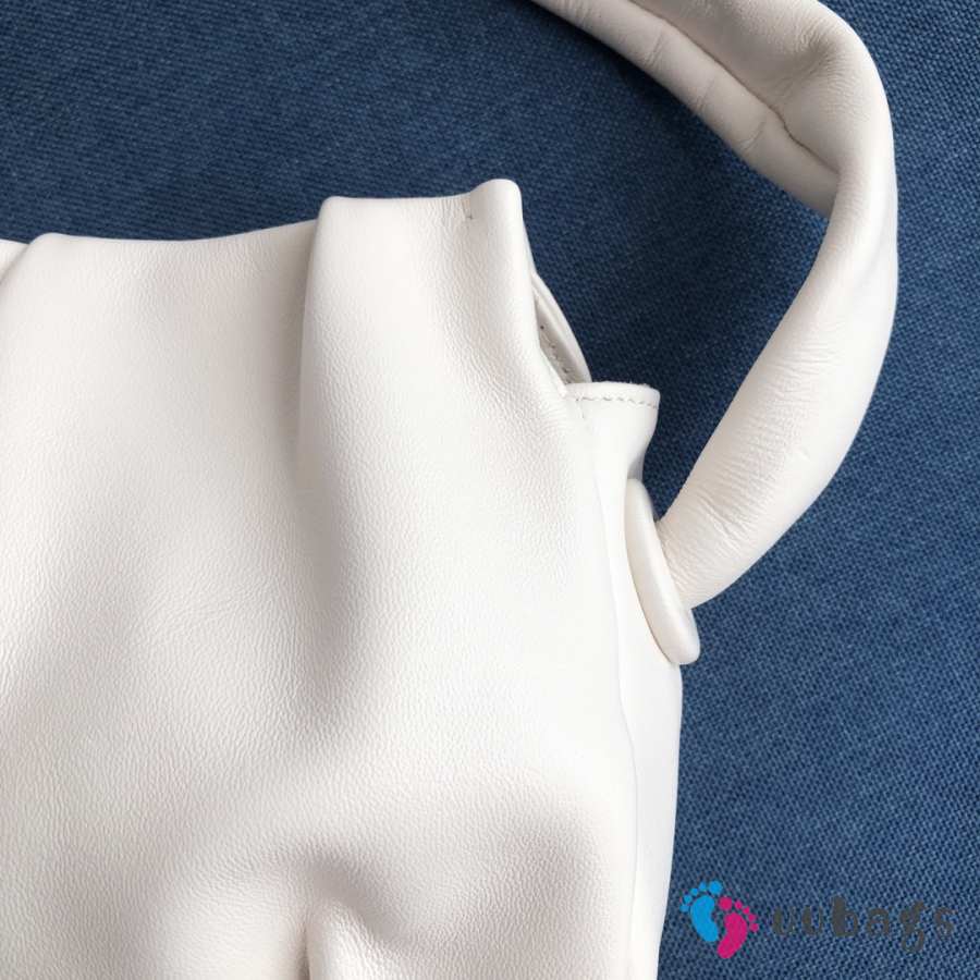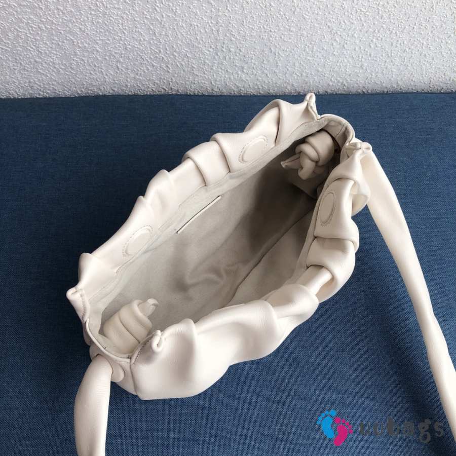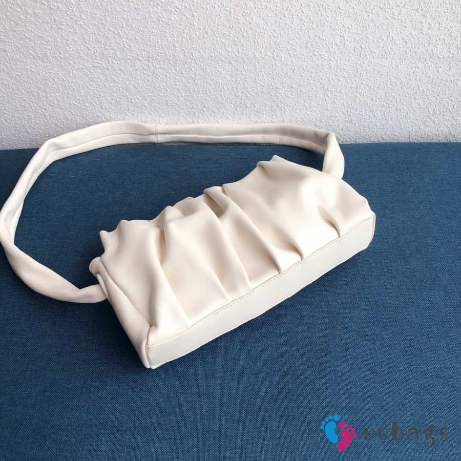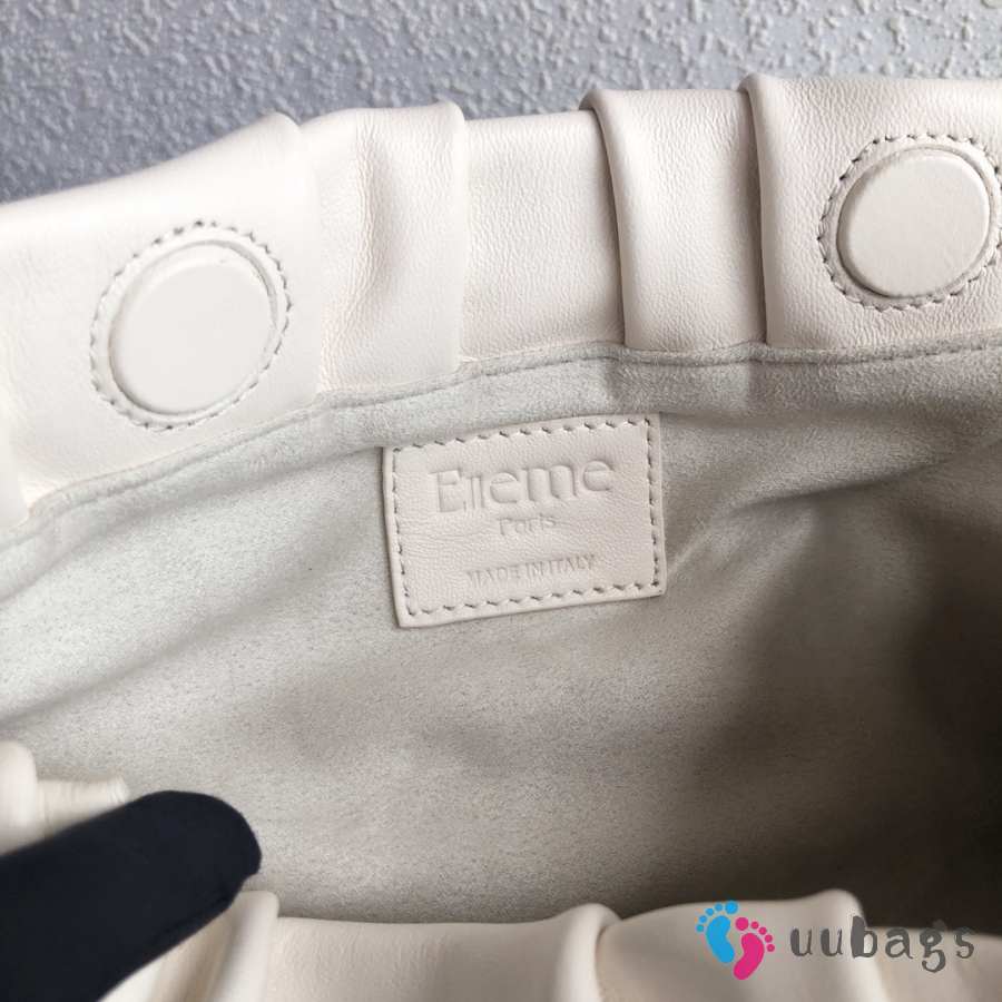 Uubags Elleme Vague pleated leather shoulder bag in white lambskin leather 26cm