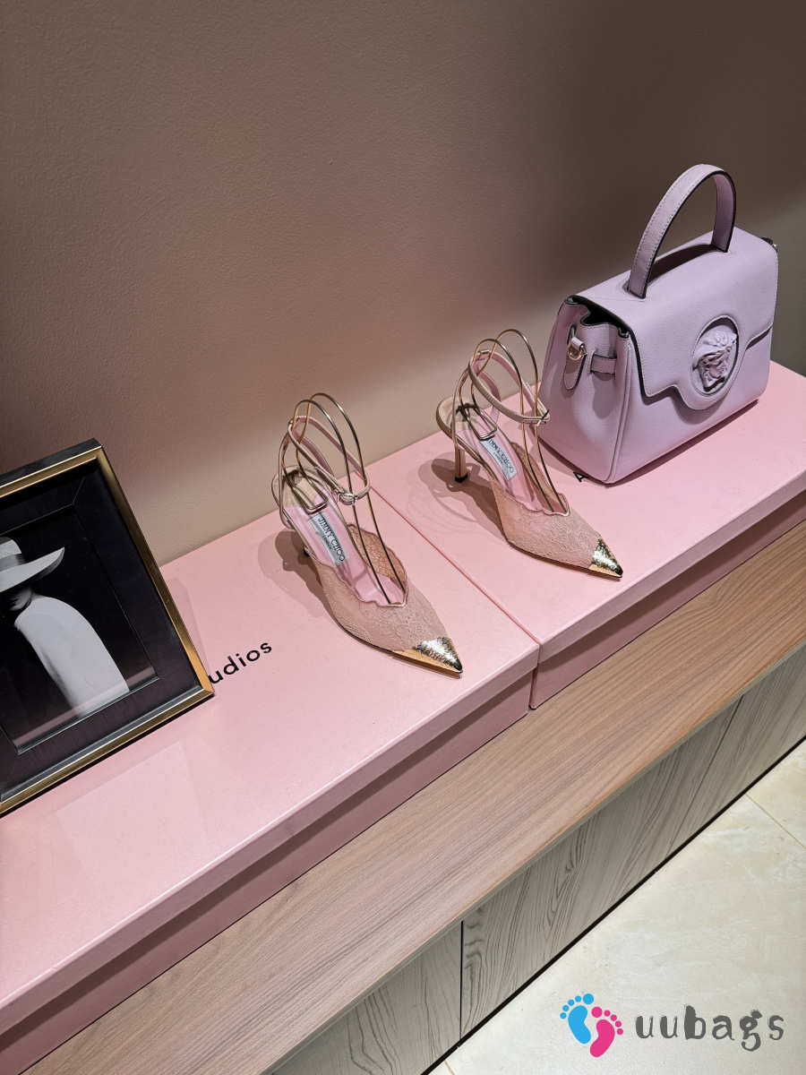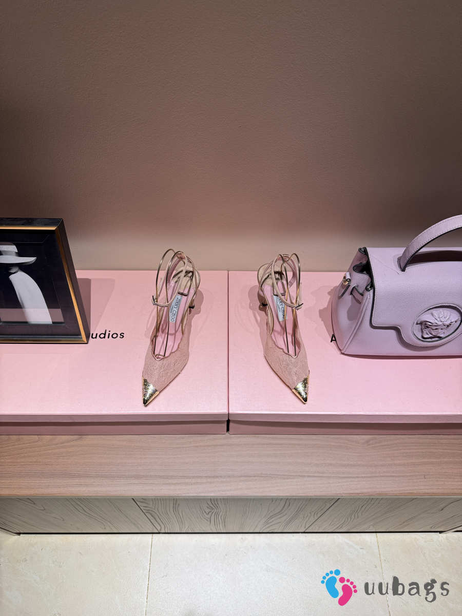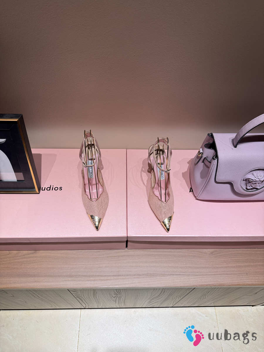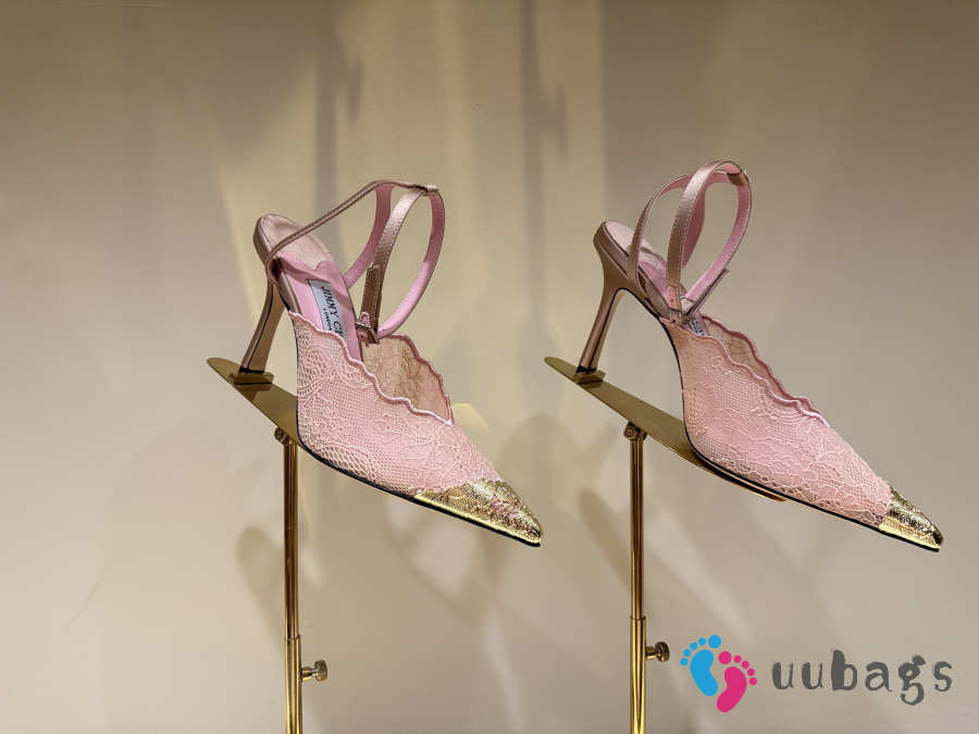 Uubags Faiz 100 Rose Jimmy Choo Lace Pumps with Metal Lace Detail in Rose / Light gold
