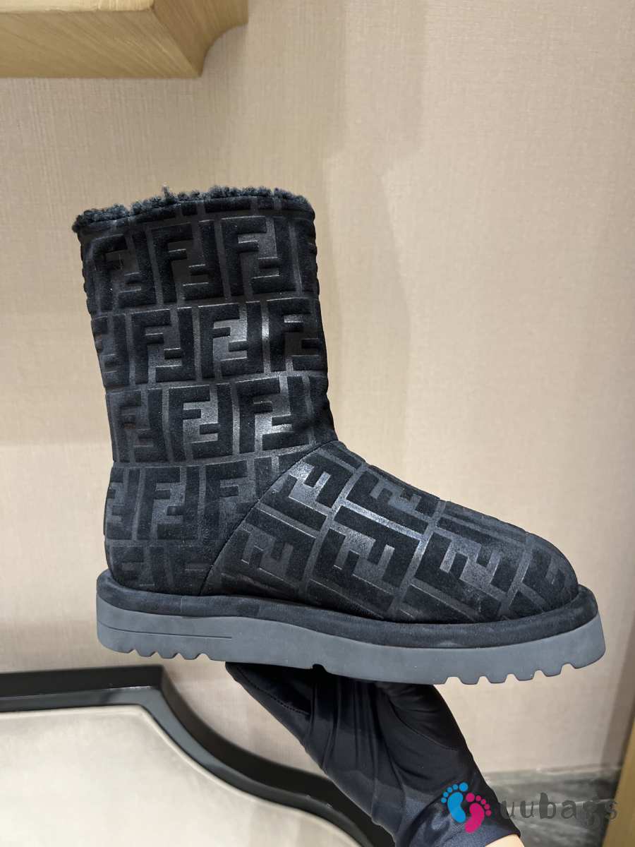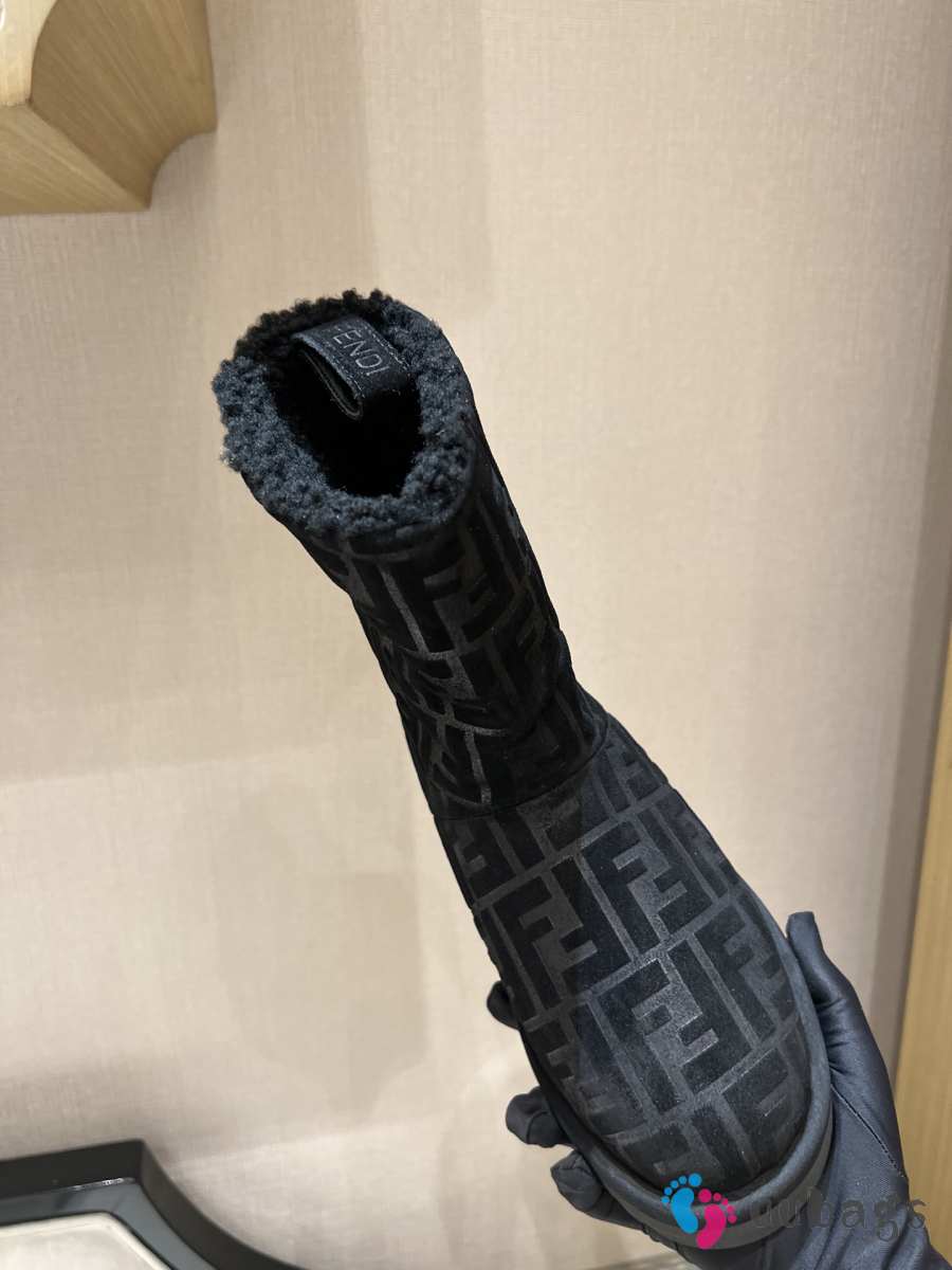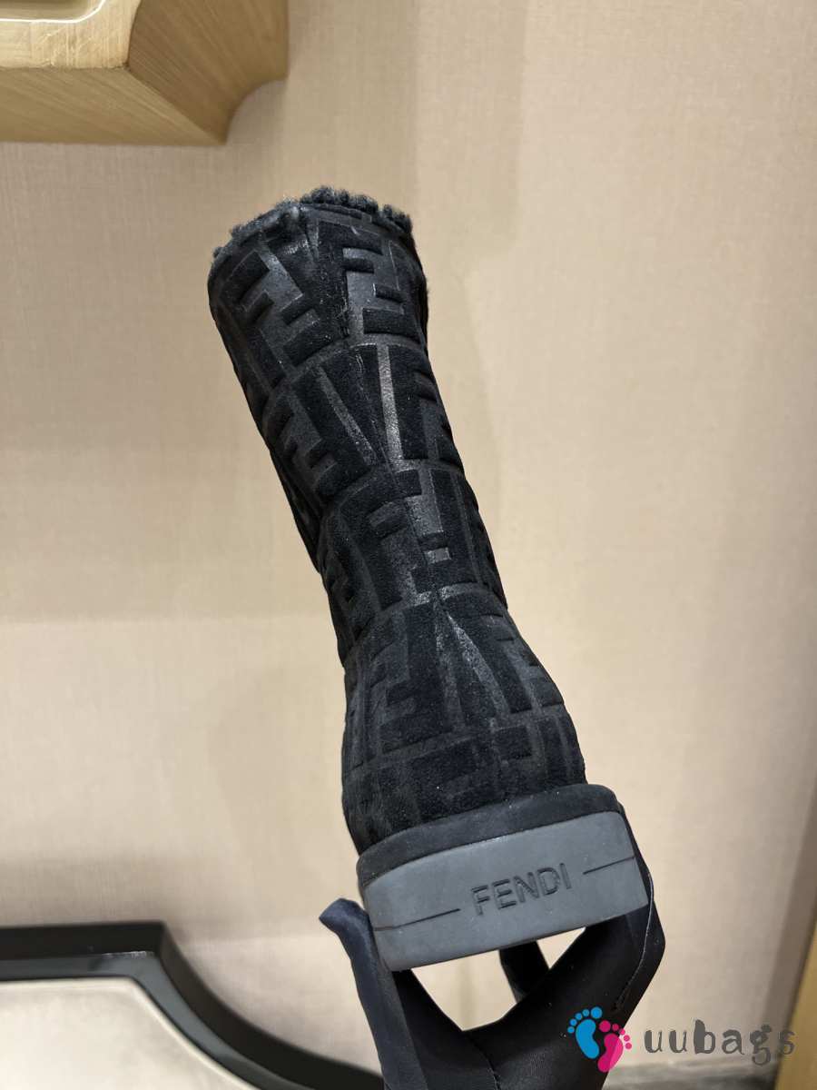 Uubags Fendi Apres Chic Brown FF chamois low boots in black 2.5cm