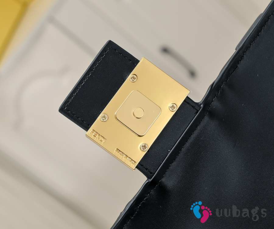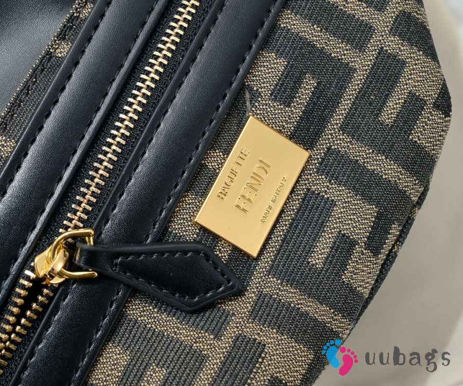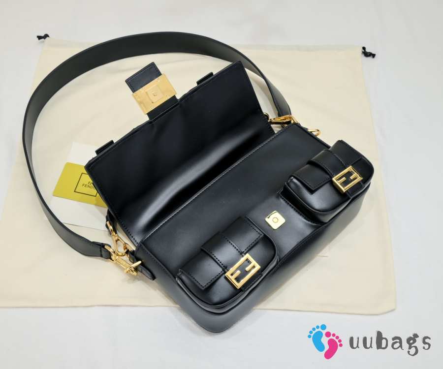 Uubags Fendi Baguette Cargo Multi-pocket Black Leather 2-way Bag 26.5x15x5cm