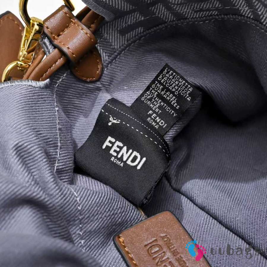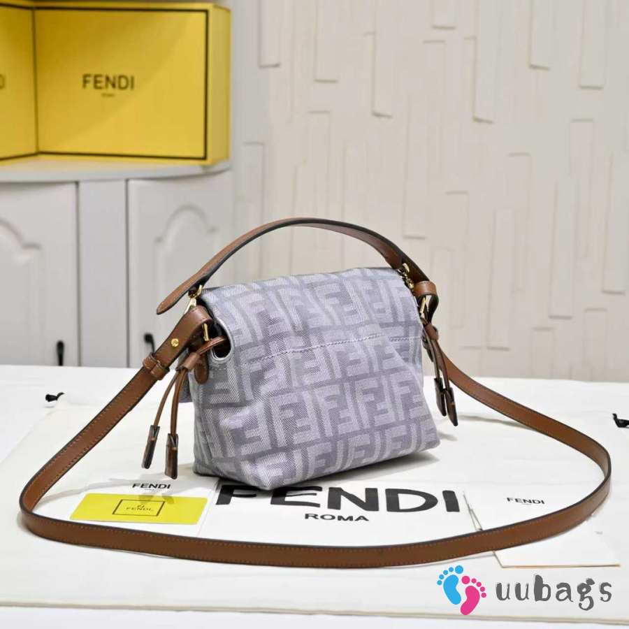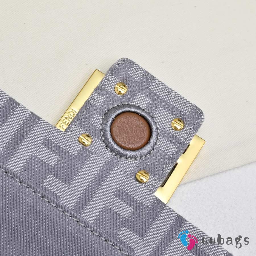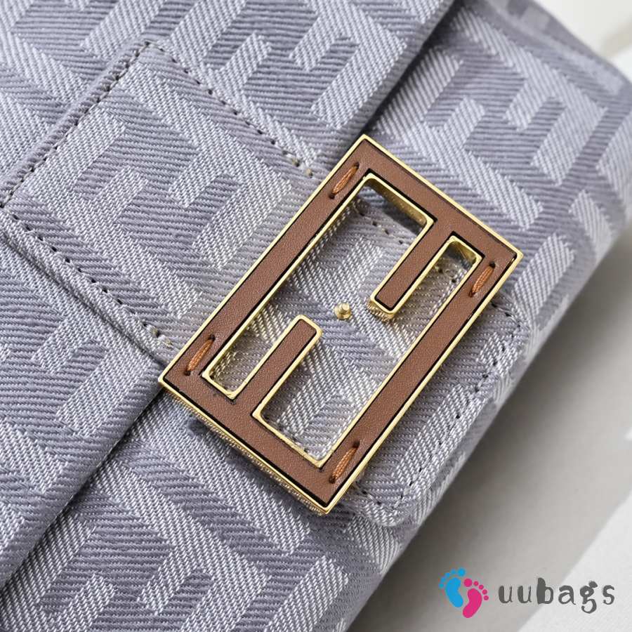 Uubags Fendi Mamma Baguette Medium Light Grey FF Flocked Denim Mini-Bag 26.5x8.5x18cm