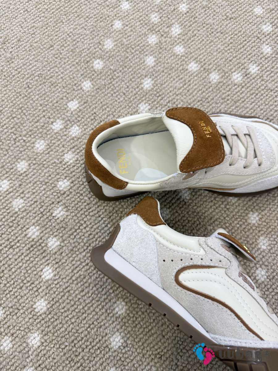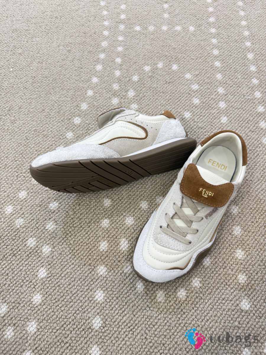 Uubags Fendi Wave Pulse white and brown suede low-tops