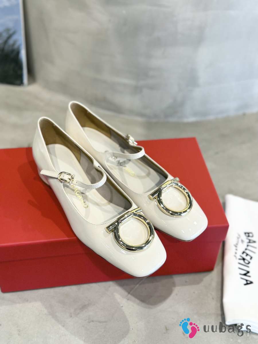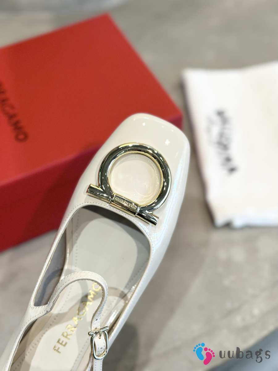 Uubags Ferragamo Maxi Gancini Mary Jane Pump In White 2cm