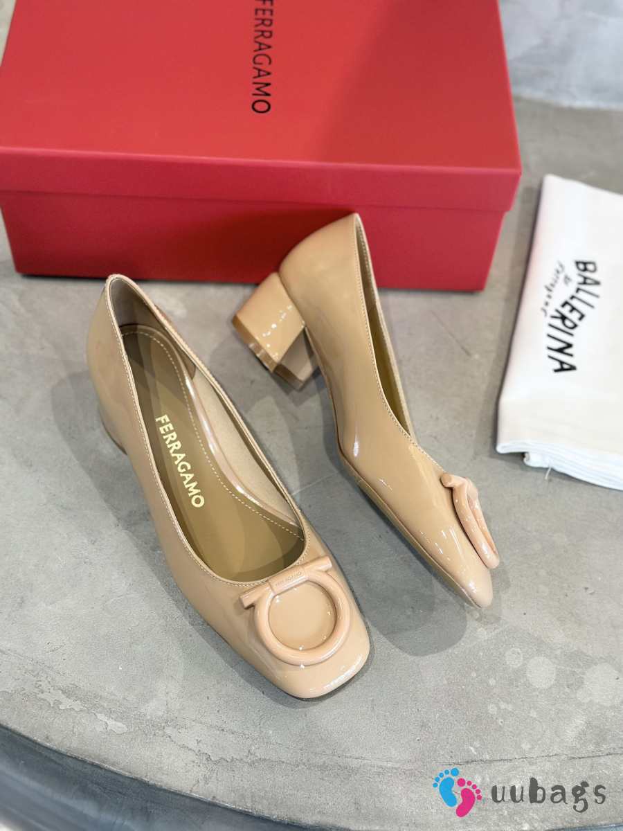 Uubags Ferragamo Maxi Gancini pump in beige 4cm